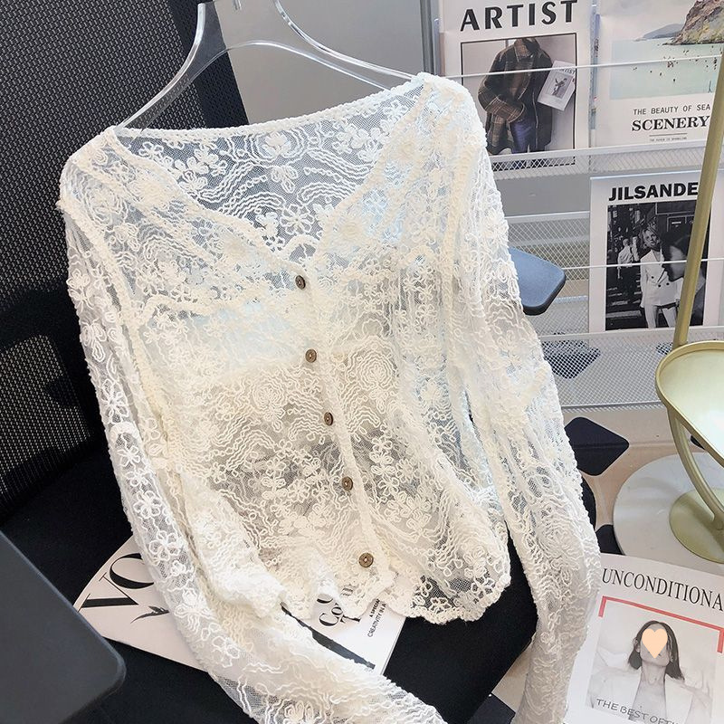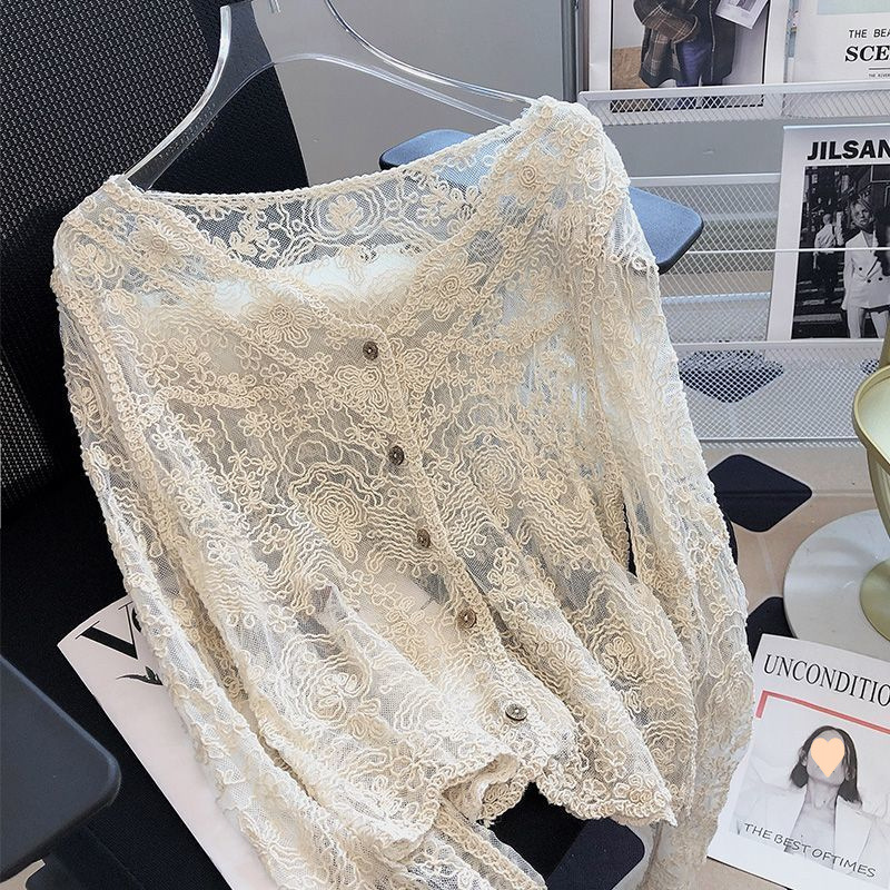 레이스 숄 쉬폰 카디건 여성 여름 얇은 거즈 중공 긴팔 탑 봄 2025 새로운 스타일스토어 가기