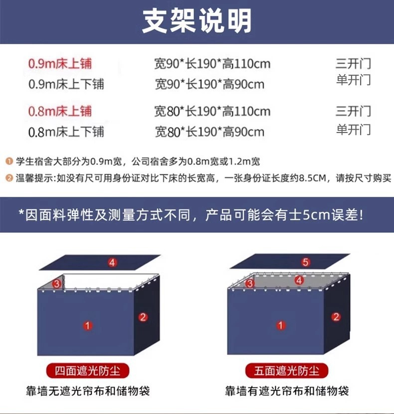 • 0.9m 침대 [높은 상부 침대] 폭 90* 길이 190* 높이 110 [3도어 접합 브래킷 없음]
