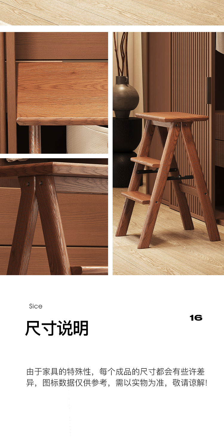 # 단단한 나무 3단 사다리 의자, 접이식 두꺼운 사다리 의자, 가정용 의자, 이중 목적 다기능 옷장 책장 및 사다리스토어 가기