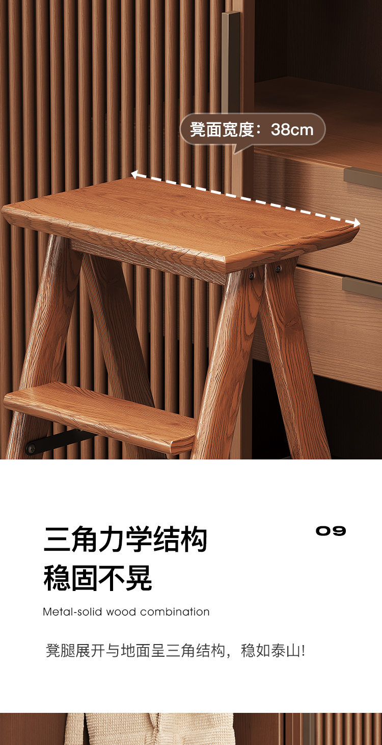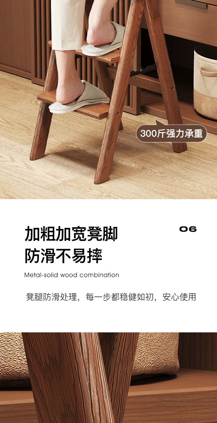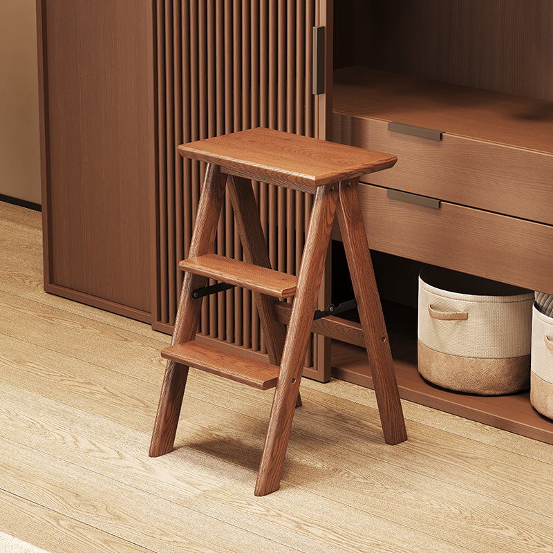 # 단단한 나무 3단 사다리 의자, 접이식 두꺼운 사다리 의자, 가정용 의자, 이중 목적 다기능 옷장 책장 및 사다리