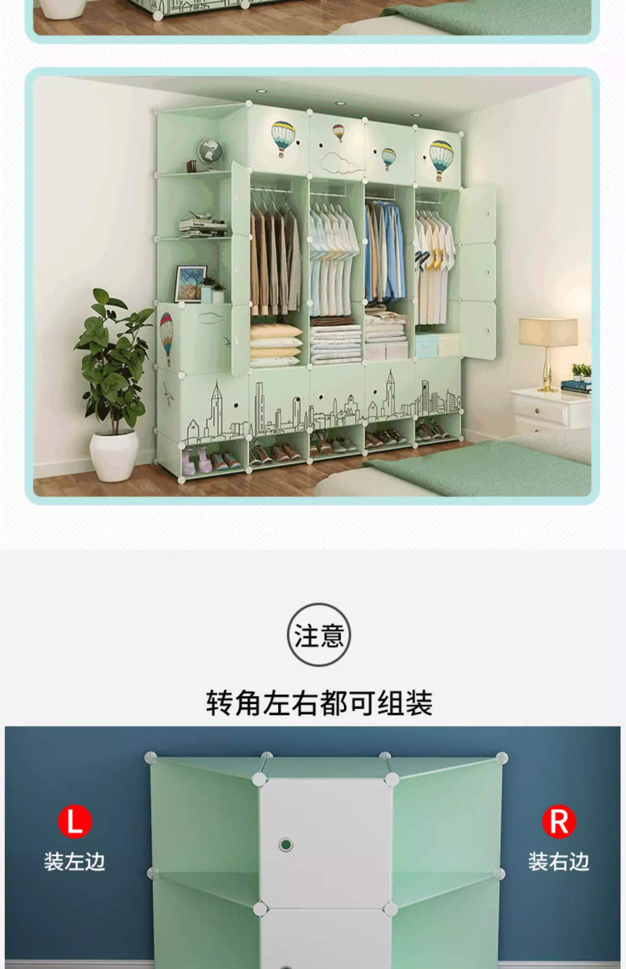 가정용 침실 임대실을 위한 간단한 옷장 조립 보관 캐비닛 어린이 보관 캐비닛 강한 플라스틱 천 옷장