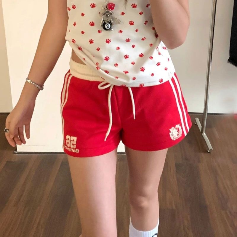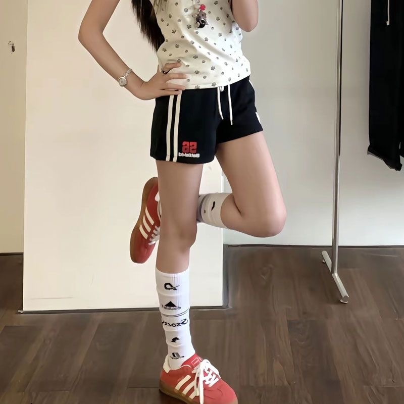 여성을위한 미국 복고풍 문자 인쇄 스포츠 반바지 여름 2025 새로운 디자인 핫 소녀 느슨한 다목적 핫 바지