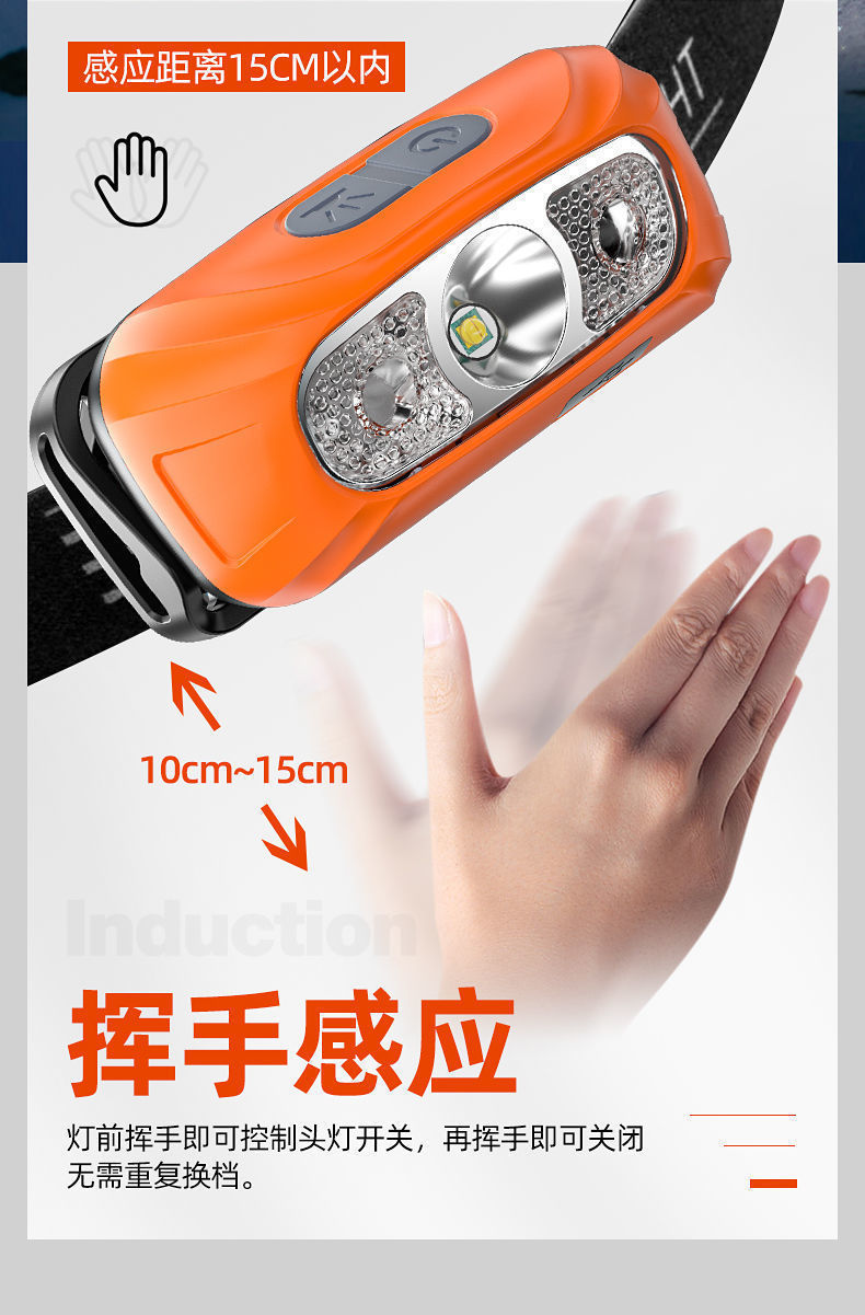 강력한 헤드라이트 충전식 초고휘도 헤드 장착형 조명 초장기 배터리 수명 유도 야외 야간 낚시 가정용 손전등