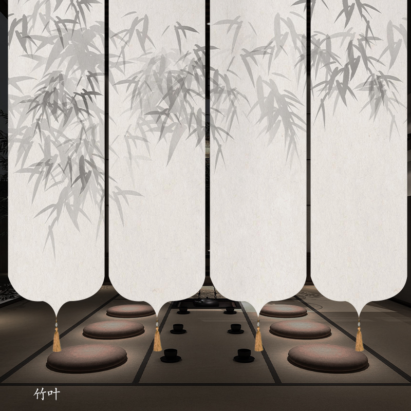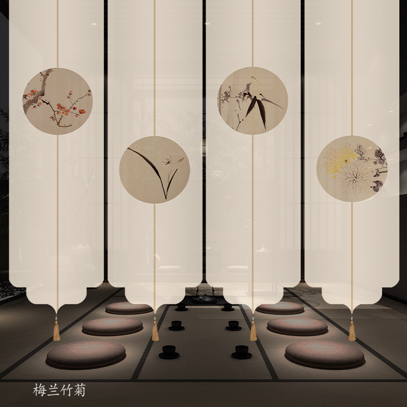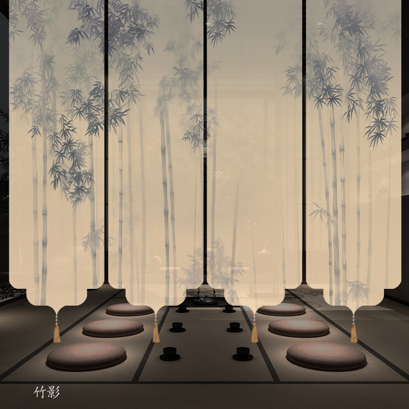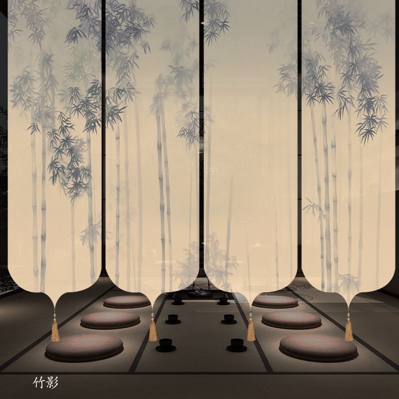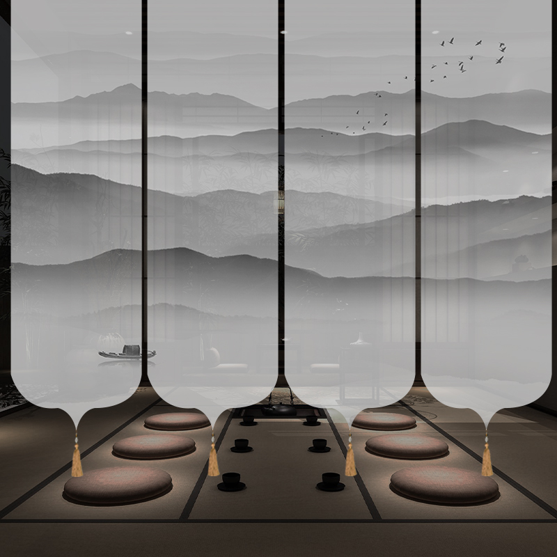 ✅ 새로운 중국 스타일 롤러 블라인드 반투명 부드러운 입구 스크린 풍경 그림 도어 커튼 커튼 송나라 미학 선 차실 파티션스토어 가기