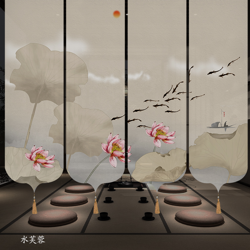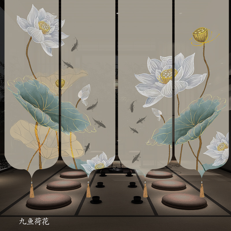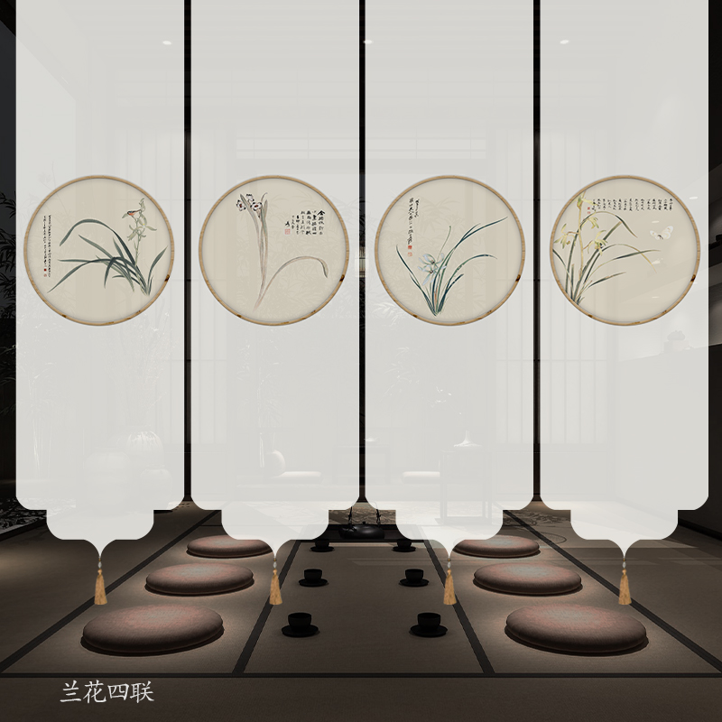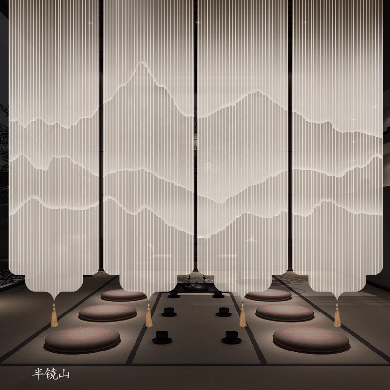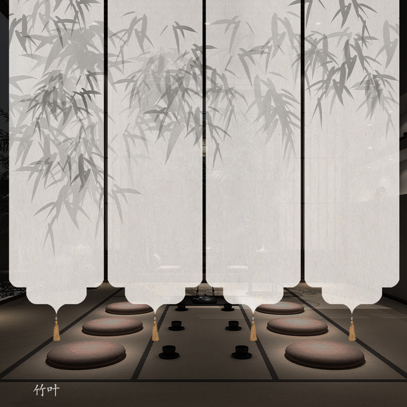 ✅ 새로운 중국 스타일 롤러 블라인드 반투명 부드러운 입구 스크린 풍경 그림 도어 커튼 커튼 송나라 미학 선 차실 파티션스토어 가기