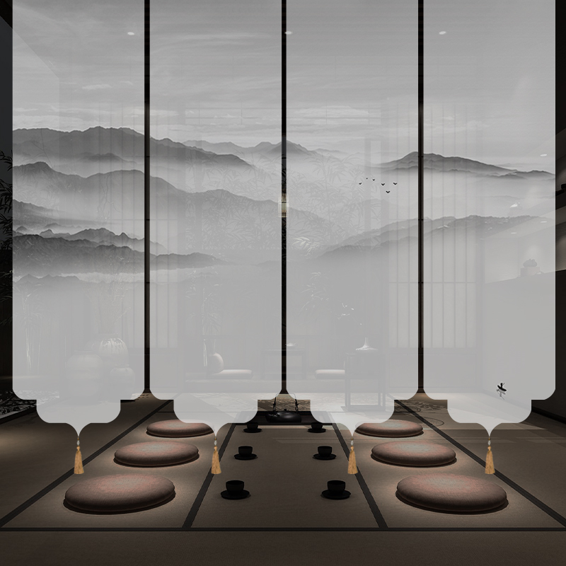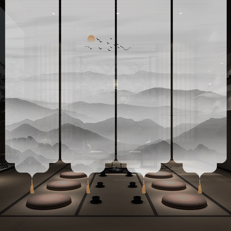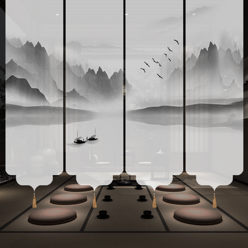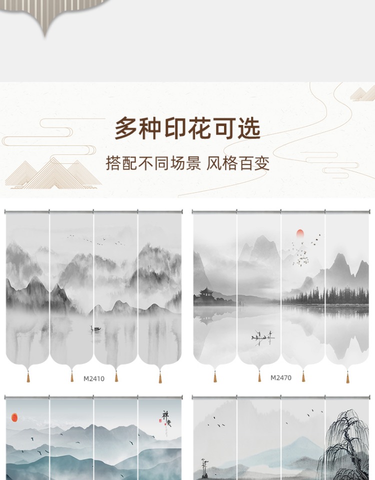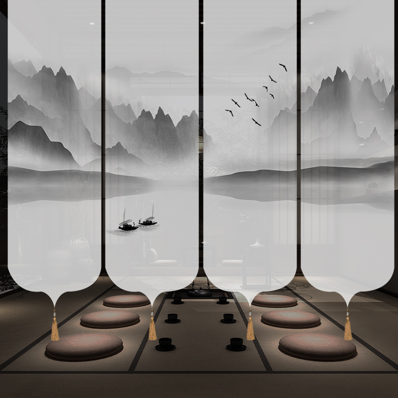 ✅ 새로운 중국 스타일 롤러 블라인드 반투명 부드러운 입구 스크린 풍경 그림 도어 커튼 커튼 송나라 미학 선 차실 파티션