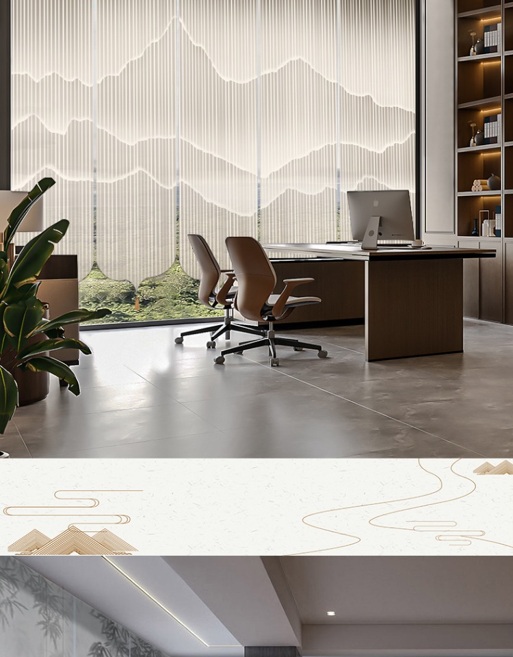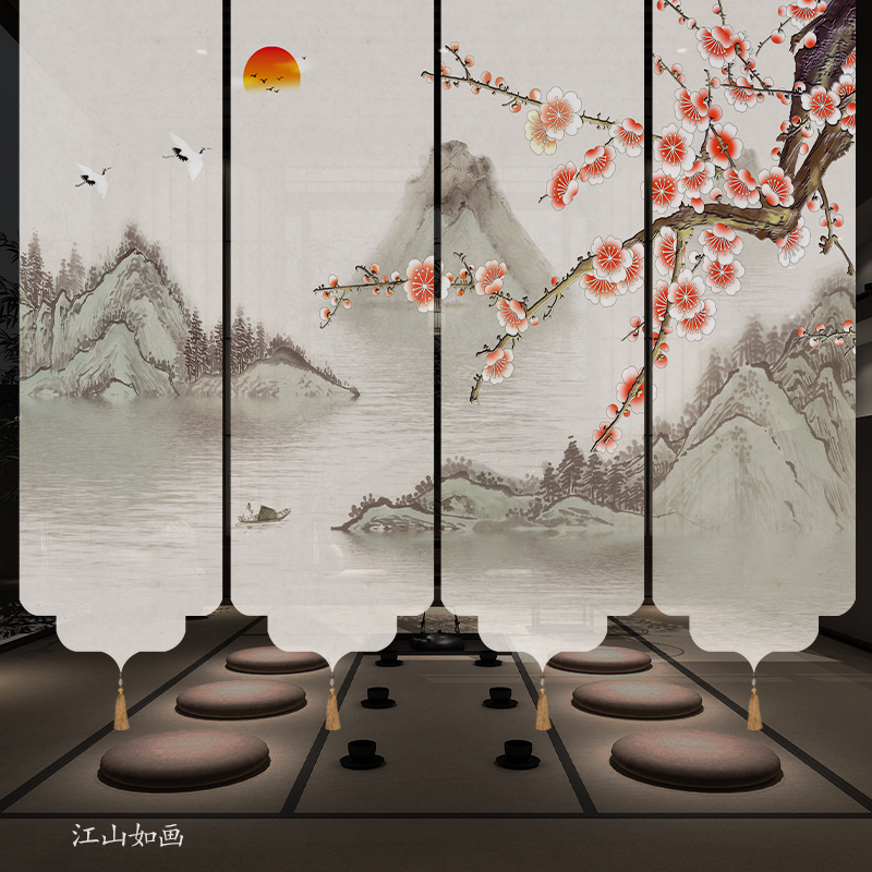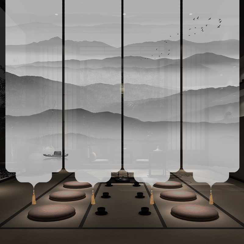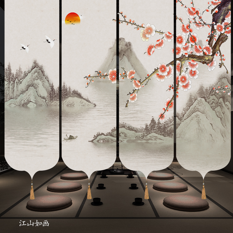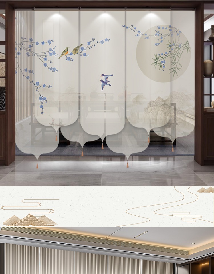 ✅ 새로운 중국 스타일 롤러 블라인드 반투명 부드러운 입구 스크린 풍경 그림 도어 커튼 커튼 송나라 미학 선 차실 파티션
