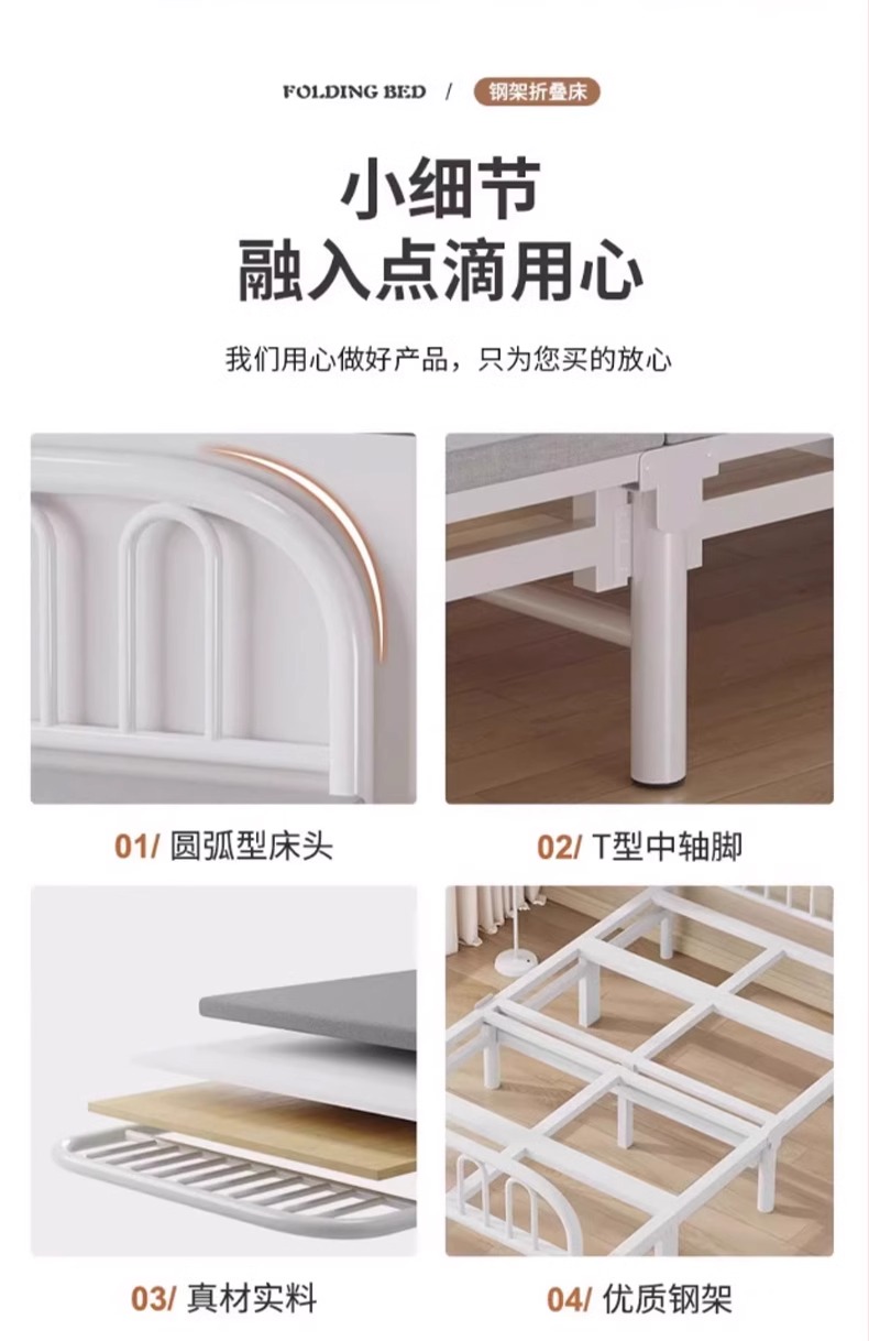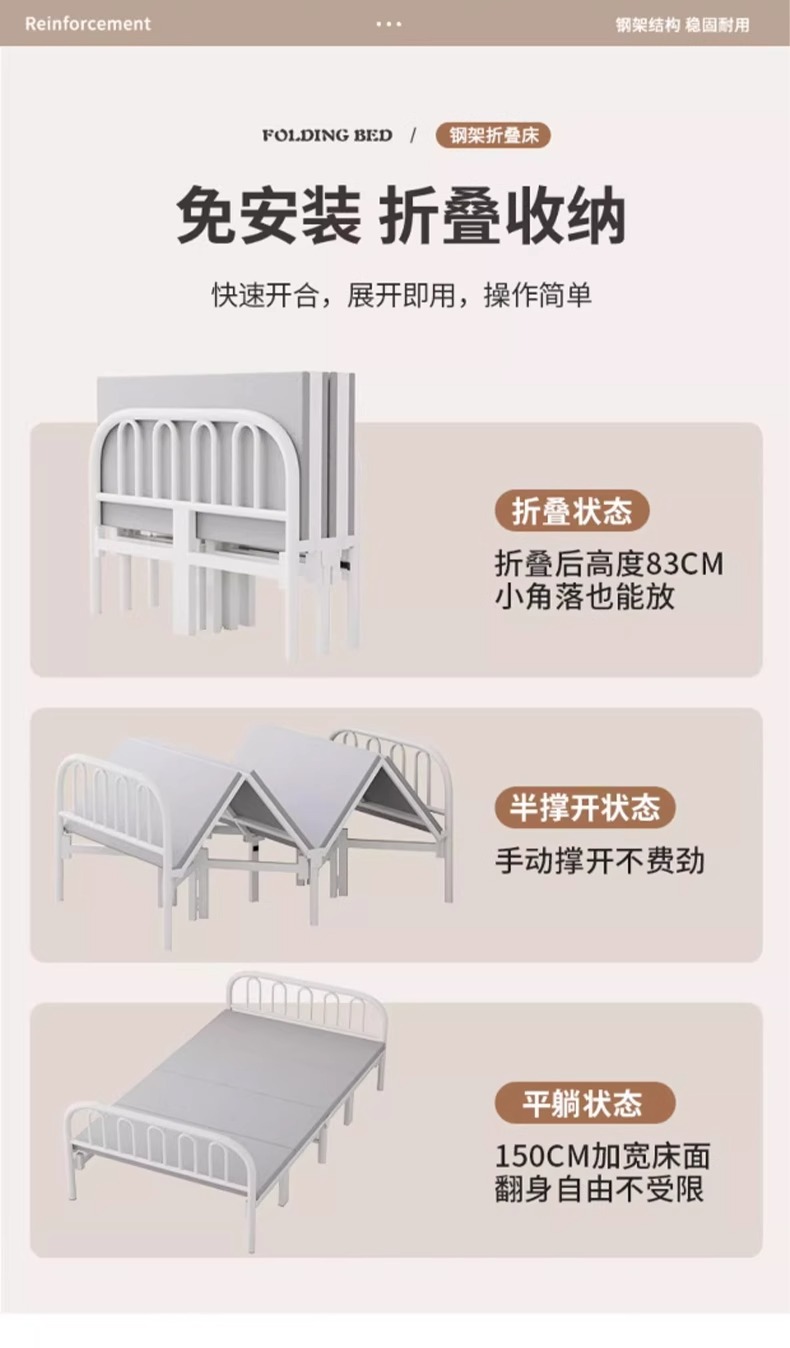 접이식 침대 싱글 침대 간이 더블 침대 1.2m 가정용 낮잠용 소형 침대 성인 기숙사 1.5m 단단한 철제 침대스토어 가기