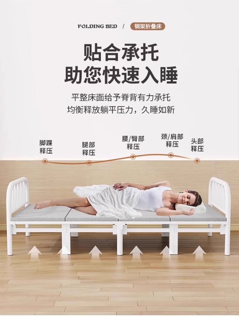 접이식 침대 싱글 침대 간이 더블 침대 1.2m 가정용 낮잠용 소형 침대 성인 기숙사 1.5m 단단한 철제 침대