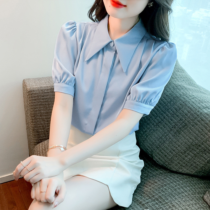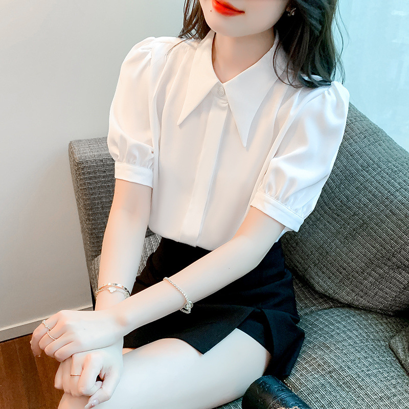 여름 흰색 셔츠 여성 반팔 2025 여름 새로운 스타일 다목적 쉬폰 셔츠 여성 슬리밍 탑스토어 가기