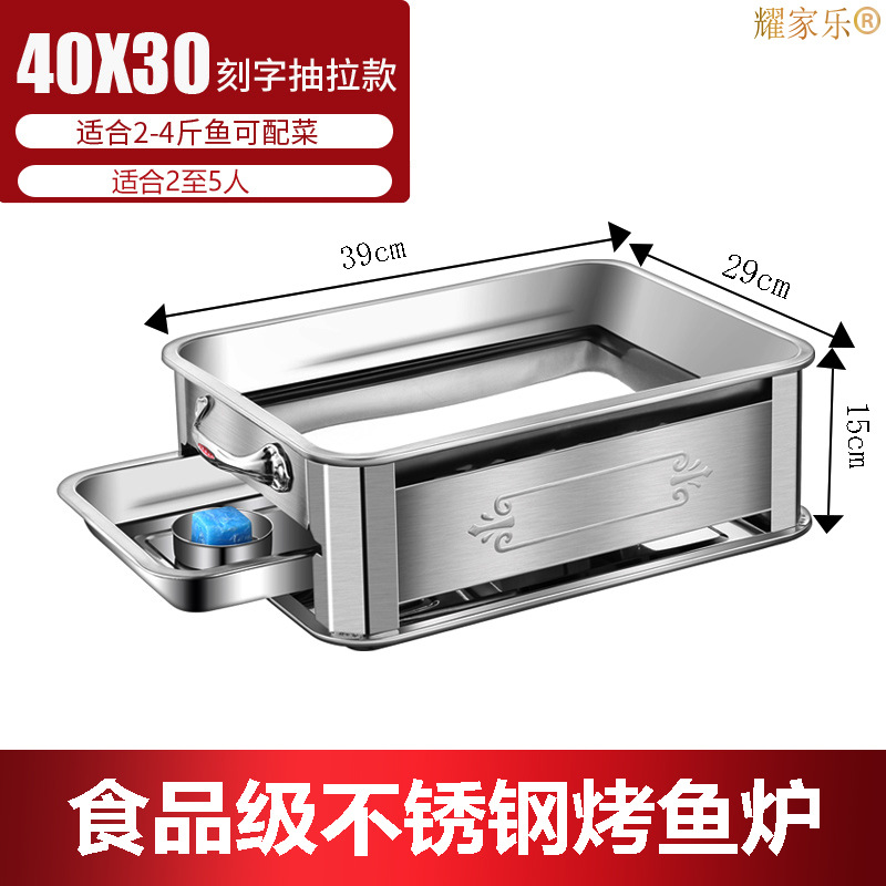 생선 구이 오븐 스테인레스 스틸 상업용 레스토랑 생선 구이 접시 가정용 숯불 그릴 무연 숯불 오븐 직사각형 알코올 스토브스토어 가기