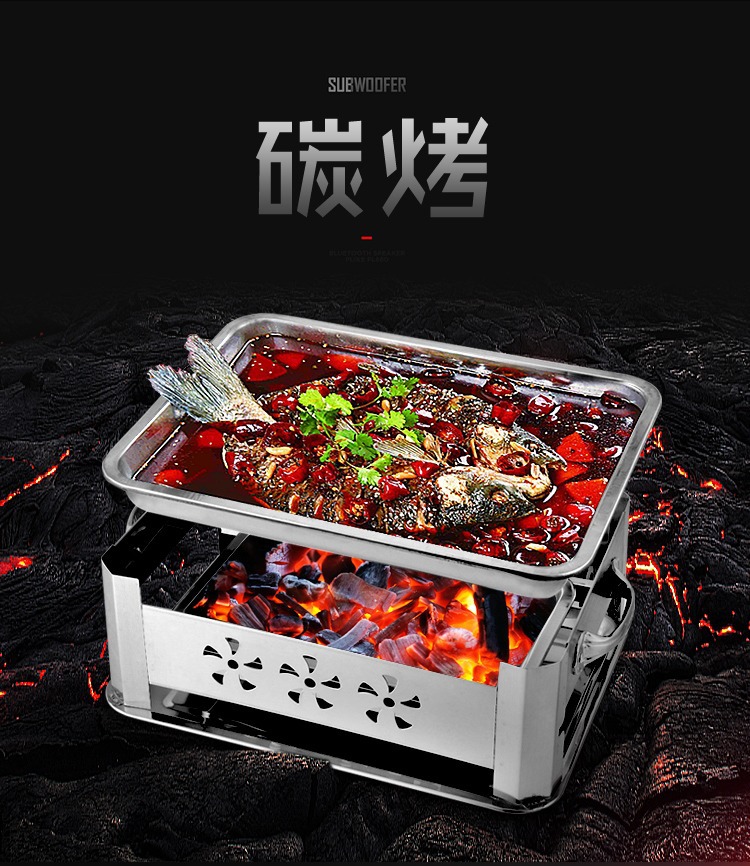 생선 구이 오븐 스테인레스 스틸 상업용 레스토랑 생선 구이 접시 가정용 숯불 그릴 무연 숯불 오븐 직사각형 알코올 스토브
