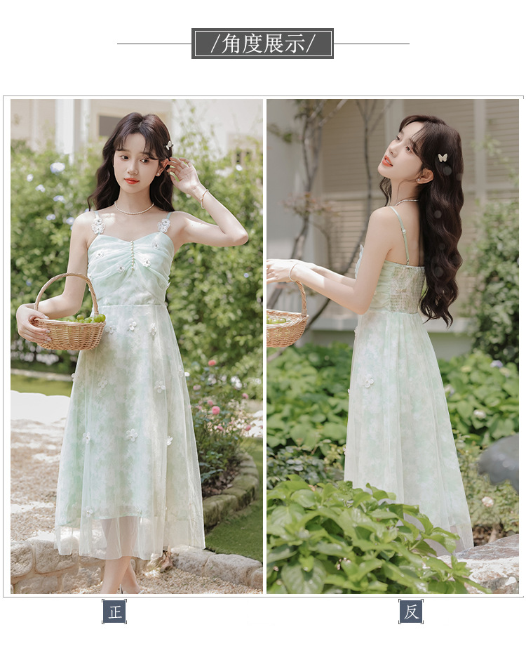여성을위한 달콤한 요정 민트 그린 서스펜더 스커트 2025 여름 새로운 꽃 드레스와 카디건 투피스 세트스토어 가기