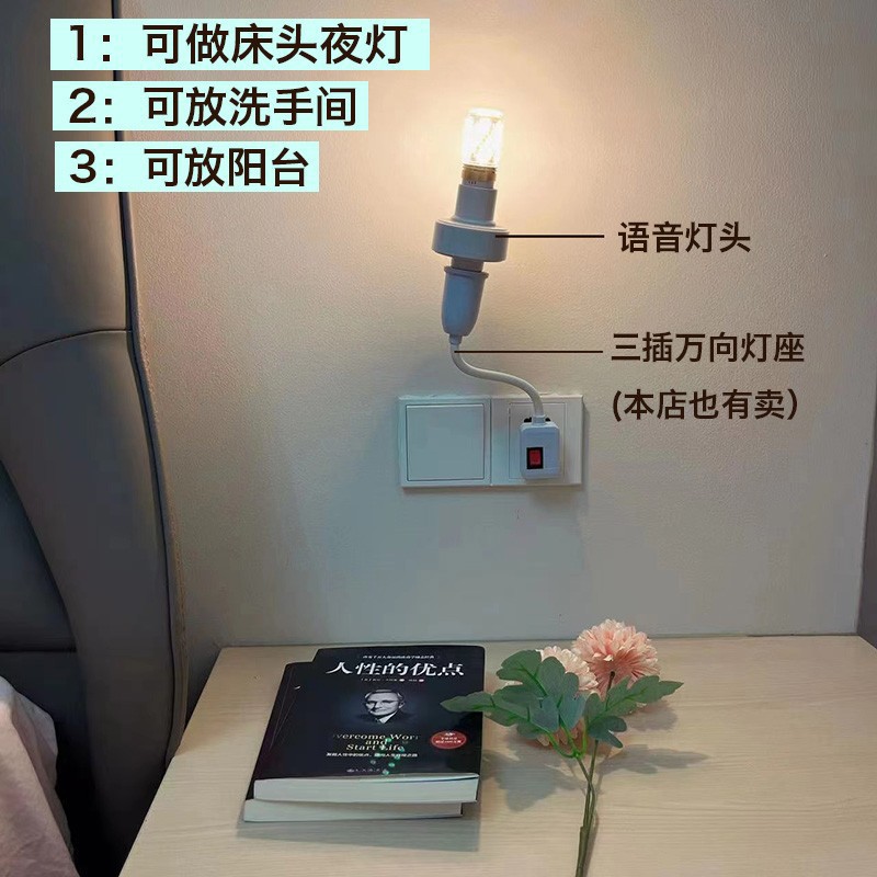인공 지능 음성 제어 LED 작은 밤 전구 나사 입구 머리맡 침실 암호 스위치 음성 제어 유도 홈