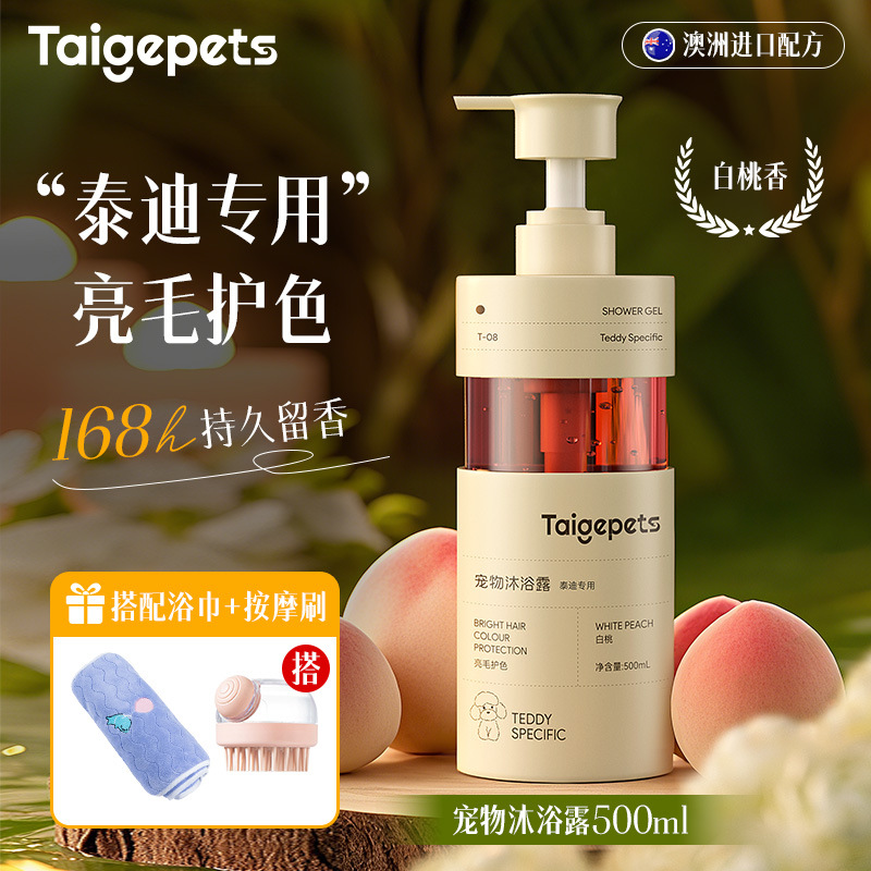 • [SPA급 목욕의 즐거움] [모든 반려견에게 적합, 항균, 진드기 제거] 500mL + 흡수성 목욕타월 + 실리콘 마사지 브러쉬