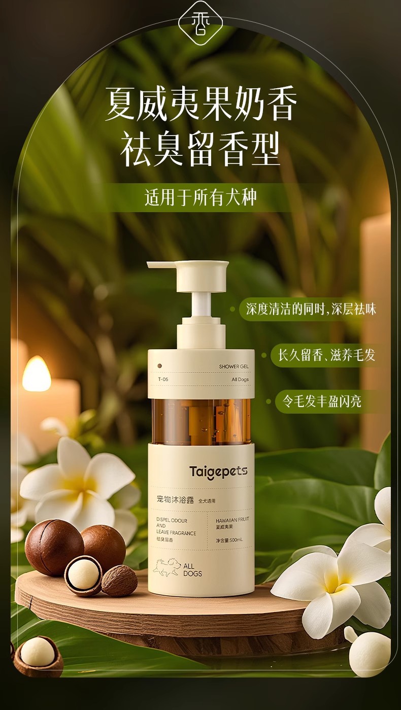 • [모든 반려견용] [99% 탈취] [168시간 지속되는 향] 마카다미아넛 밀크 프래그런스 샤워젤 500mL