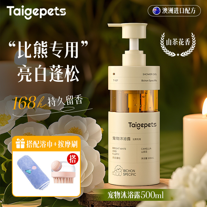 • [SPA급 목욕의 즐거움] [비숑프리제 전용, 밝고 푹신푹신] 500mL + 흡수성 목욕타월 + 실리콘 마사지 브러쉬