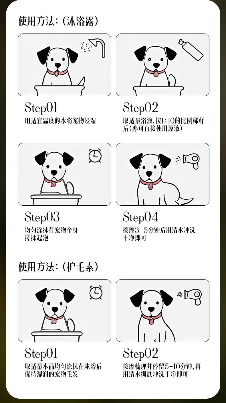 • [케어세트] [모든 반려견에게 적합, 냄새제거 및 향기유지] 500mL + 컨디셔너 500mL