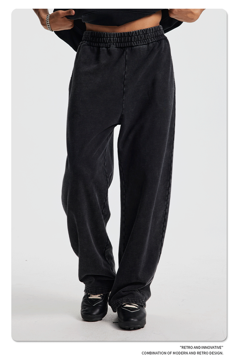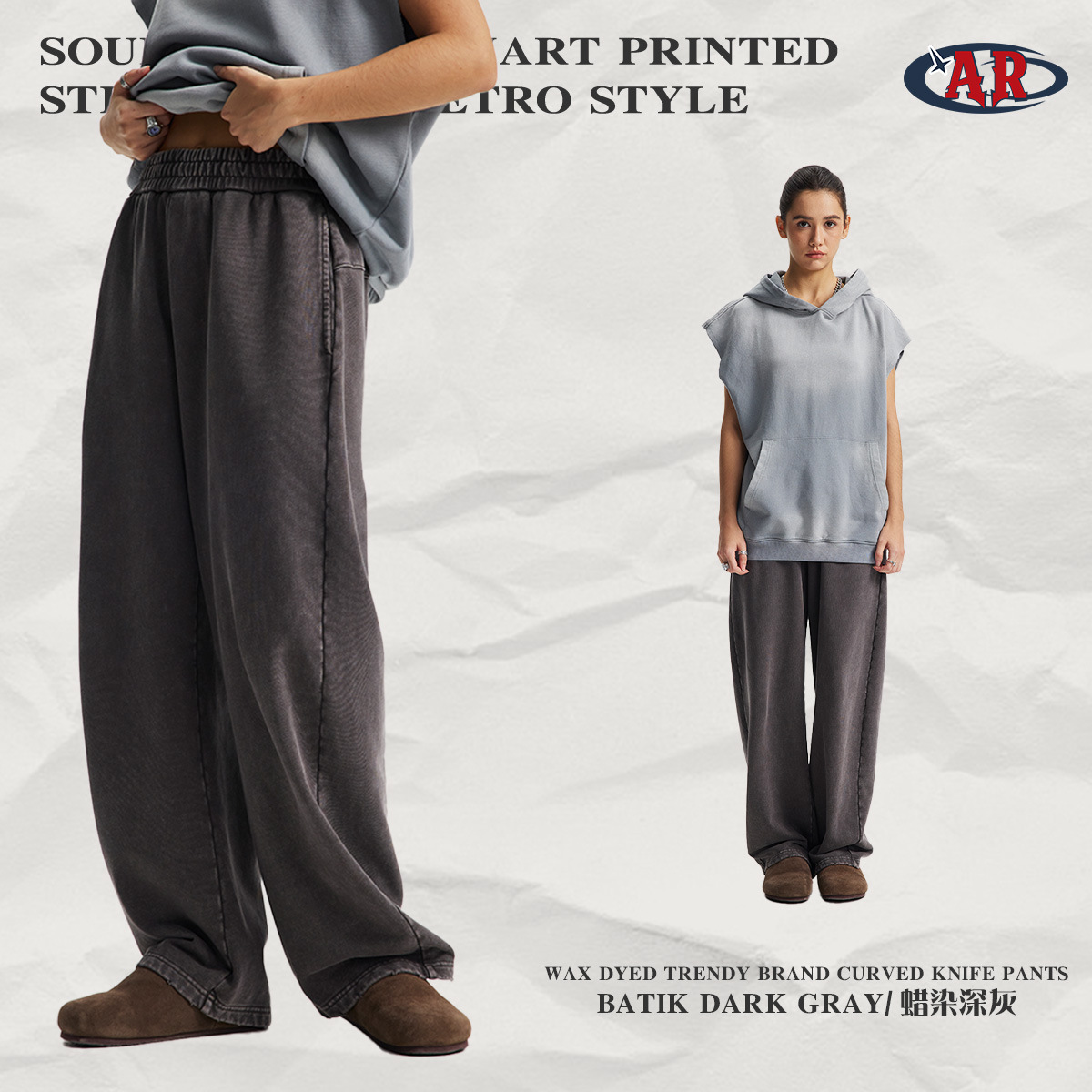 废土风炒雪花蜡染长裤 440G重磅纯棉 做旧磨破工艺 男装弯刀裤批发;