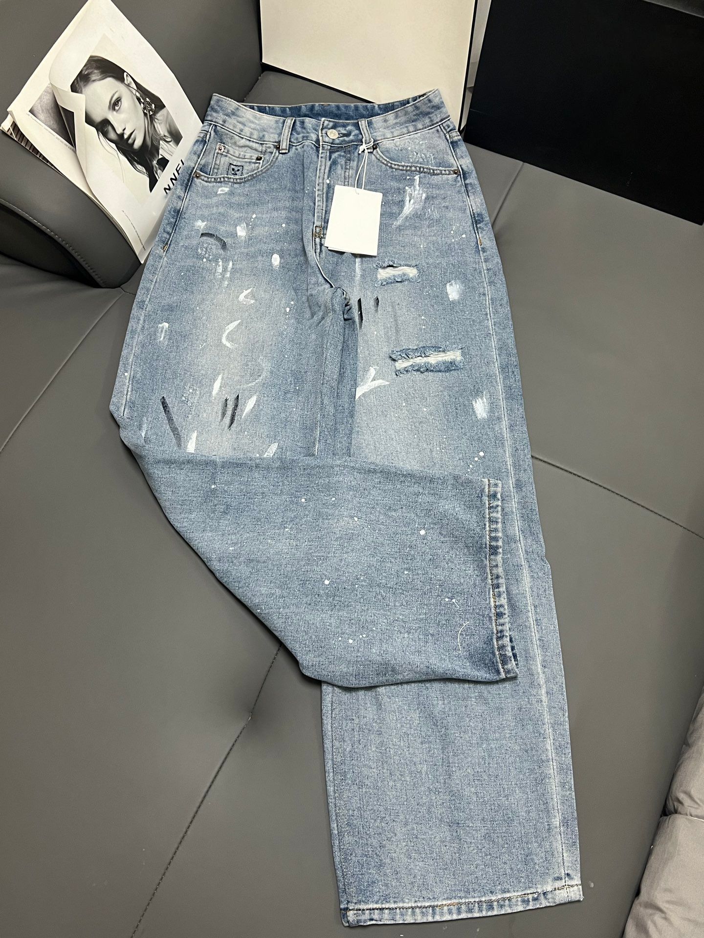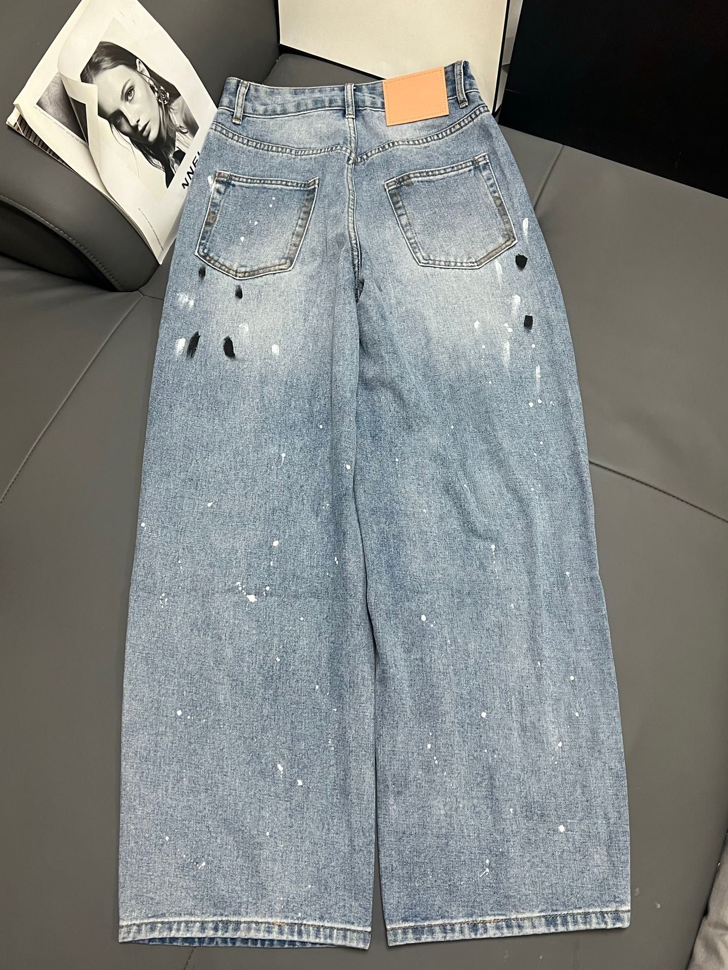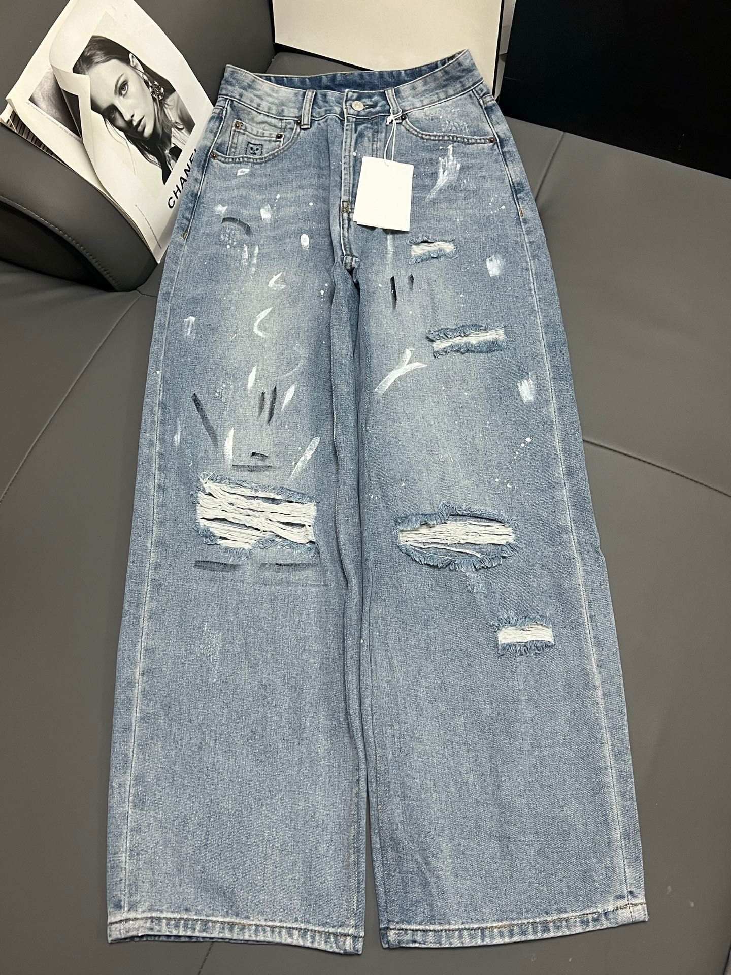 Nanyou 하이 엔드 여성 의류 2025 여름 새로운 Ac 스타일 손으로 그린 낙서 찢어진 하이 웨이스트 와이드 레그 데님 바지 여성용스토어 가기