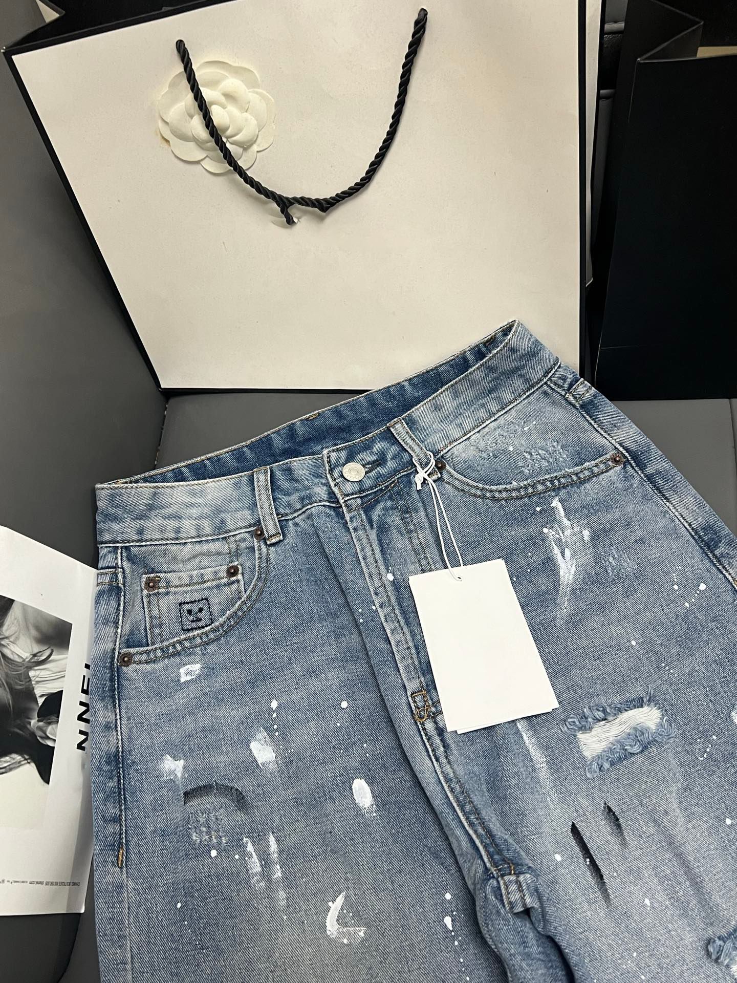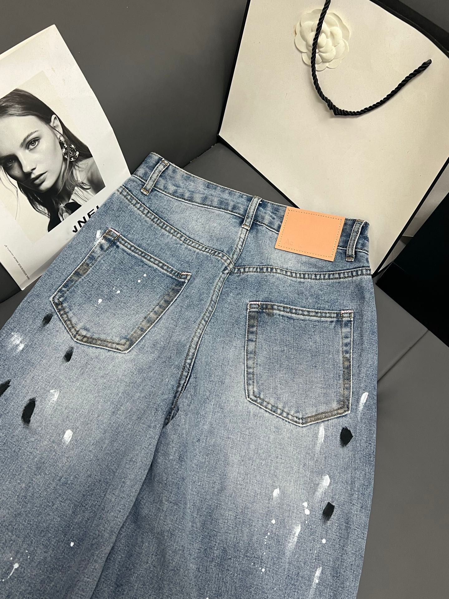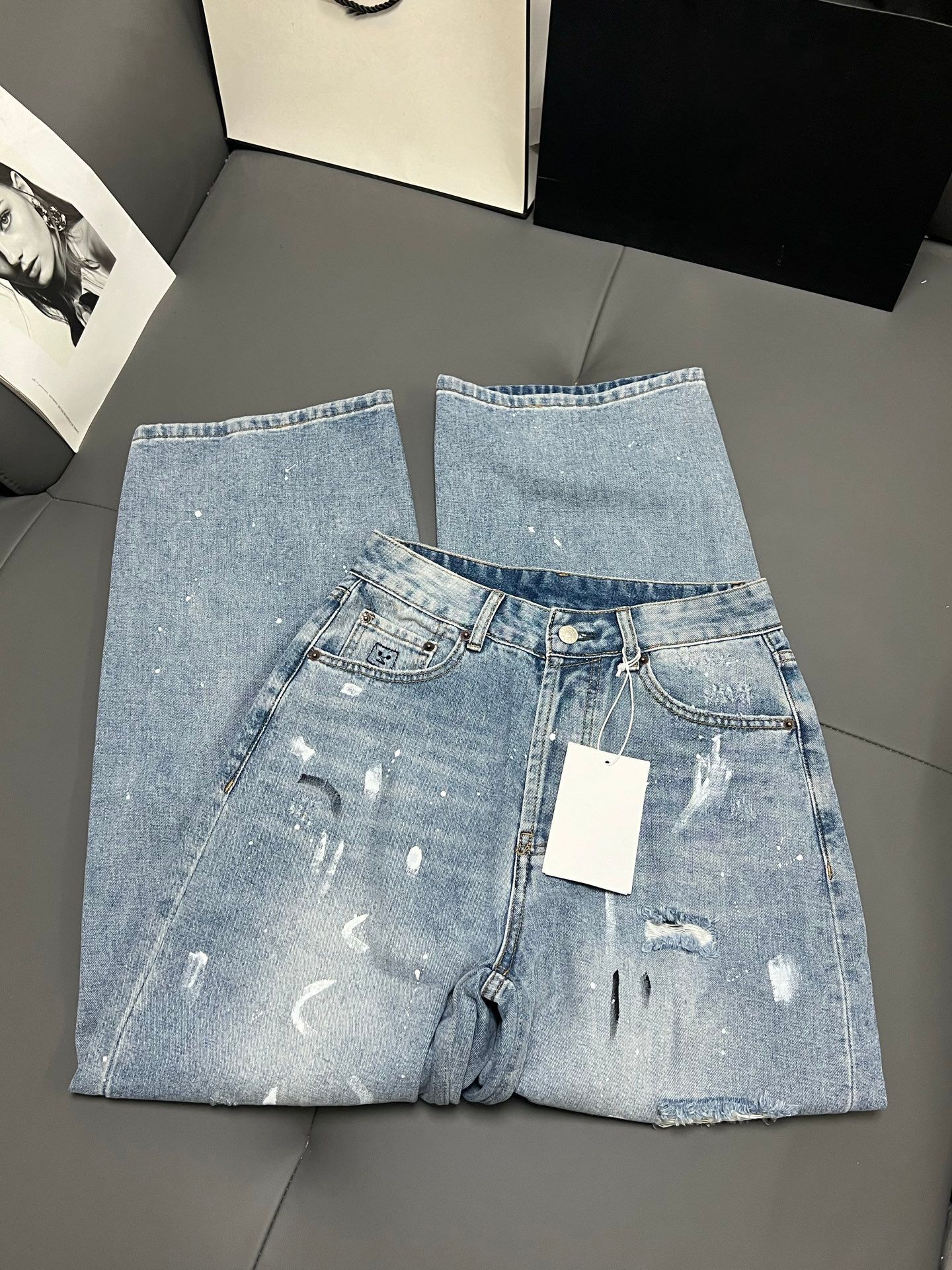 Nanyou 하이 엔드 여성 의류 2025 여름 새로운 Ac 스타일 손으로 그린 낙서 찢어진 하이 웨이스트 와이드 레그 데님 바지 여성용스토어 가기