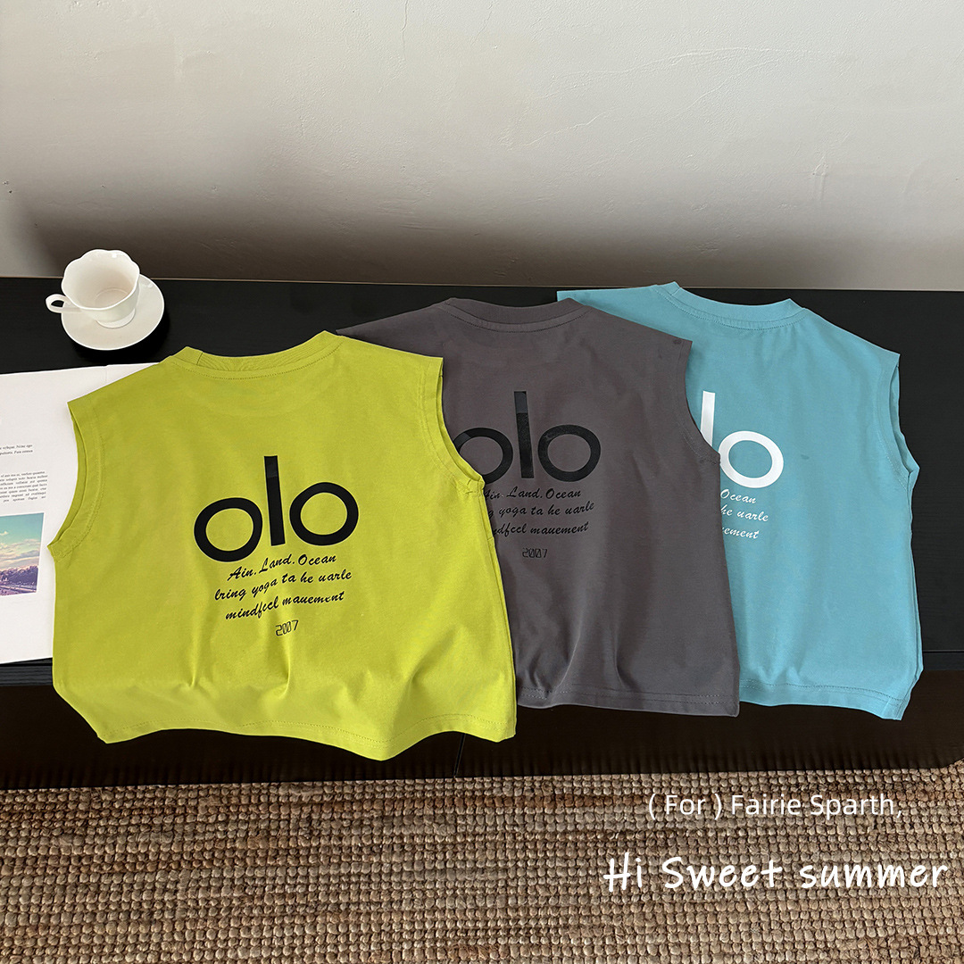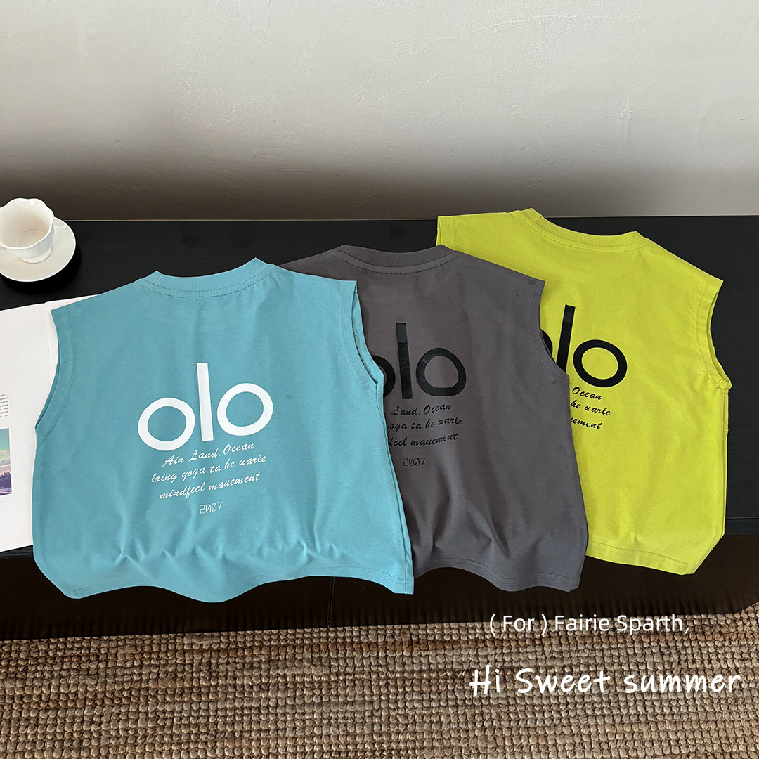 여름 어린이 시원한 면 민소매 넓은 어깨 조끼, 중대형 어린이를 위한 세련된 스포츠 스플라이스 탑, 소년 소녀 캐주얼스토어 가기