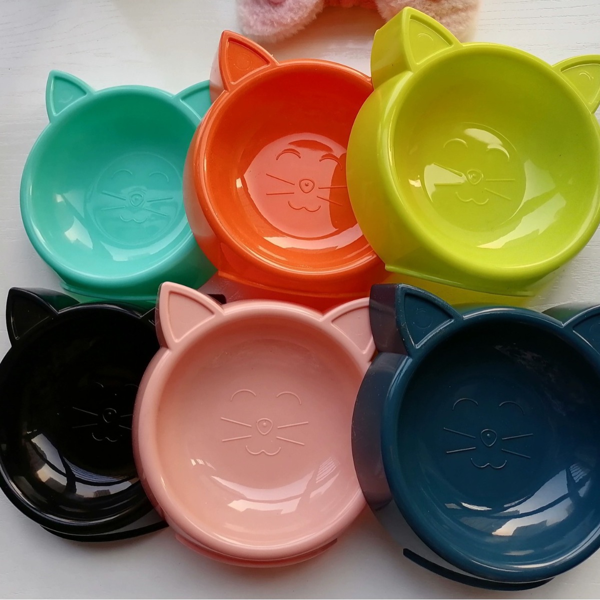 마카롱 플라스틱 식기 고양이 그릇 도매 고양이 얼굴 애완 동물 단일 그릇 흔들림 방지 애완 동물 그릇 새끼 고양이 그릇 개 그릇스토어 가기