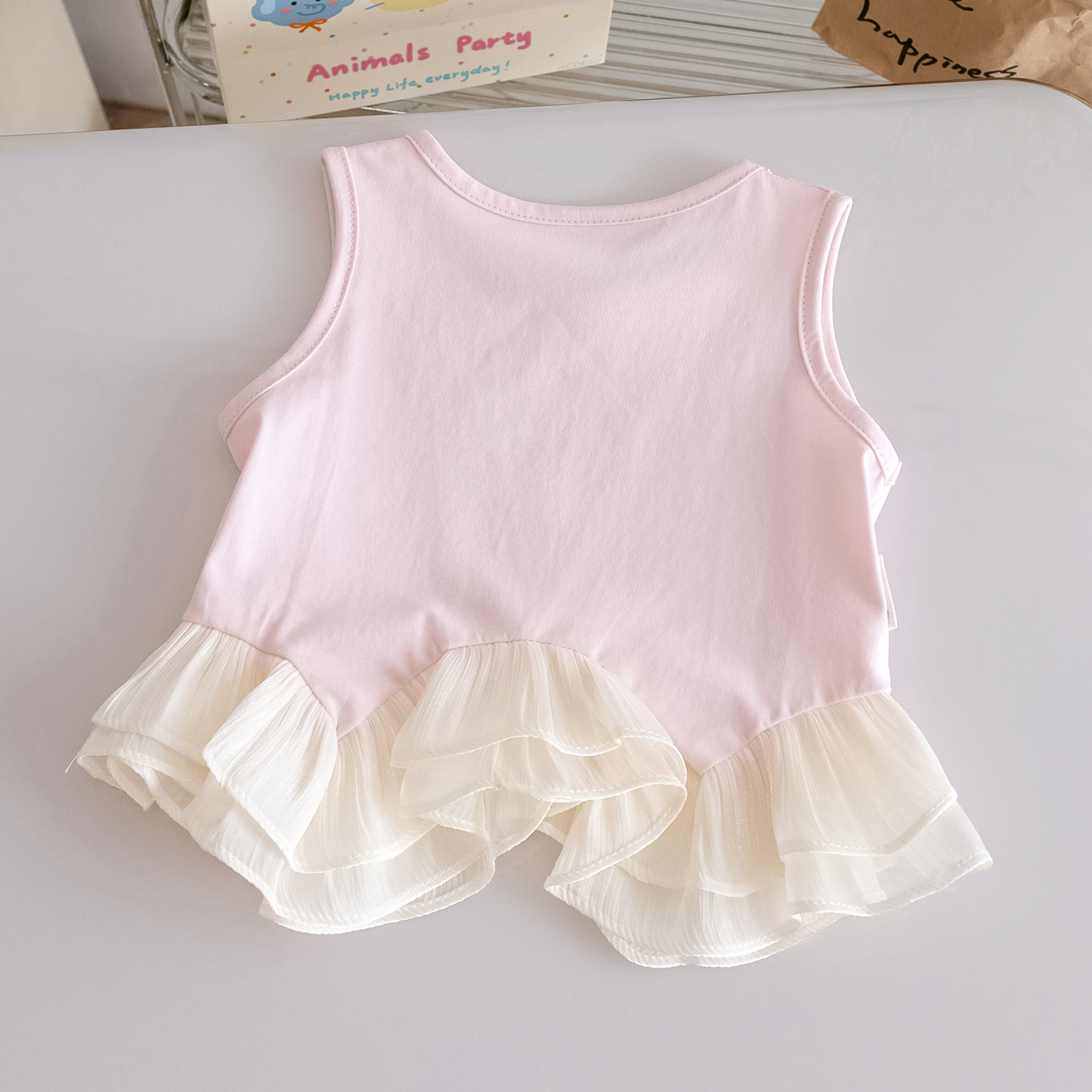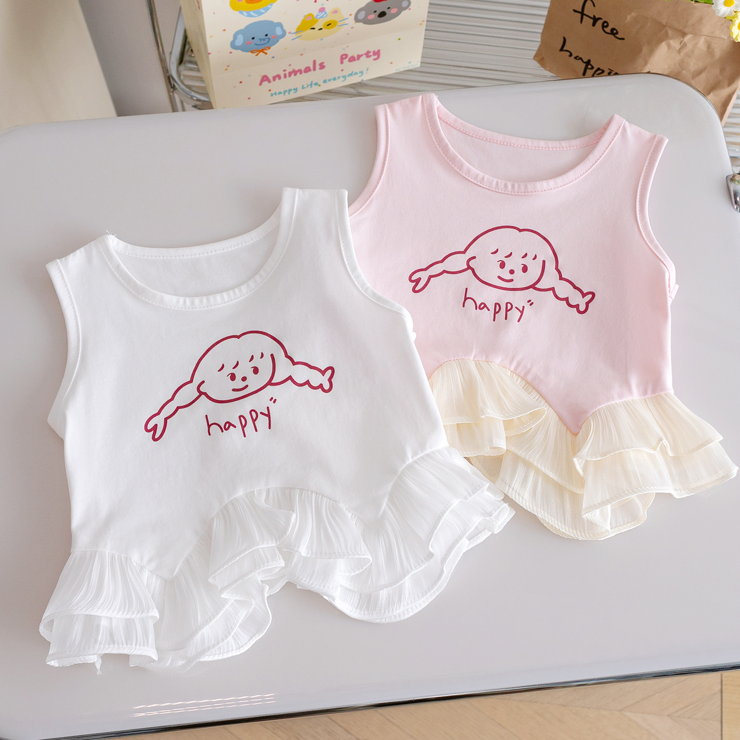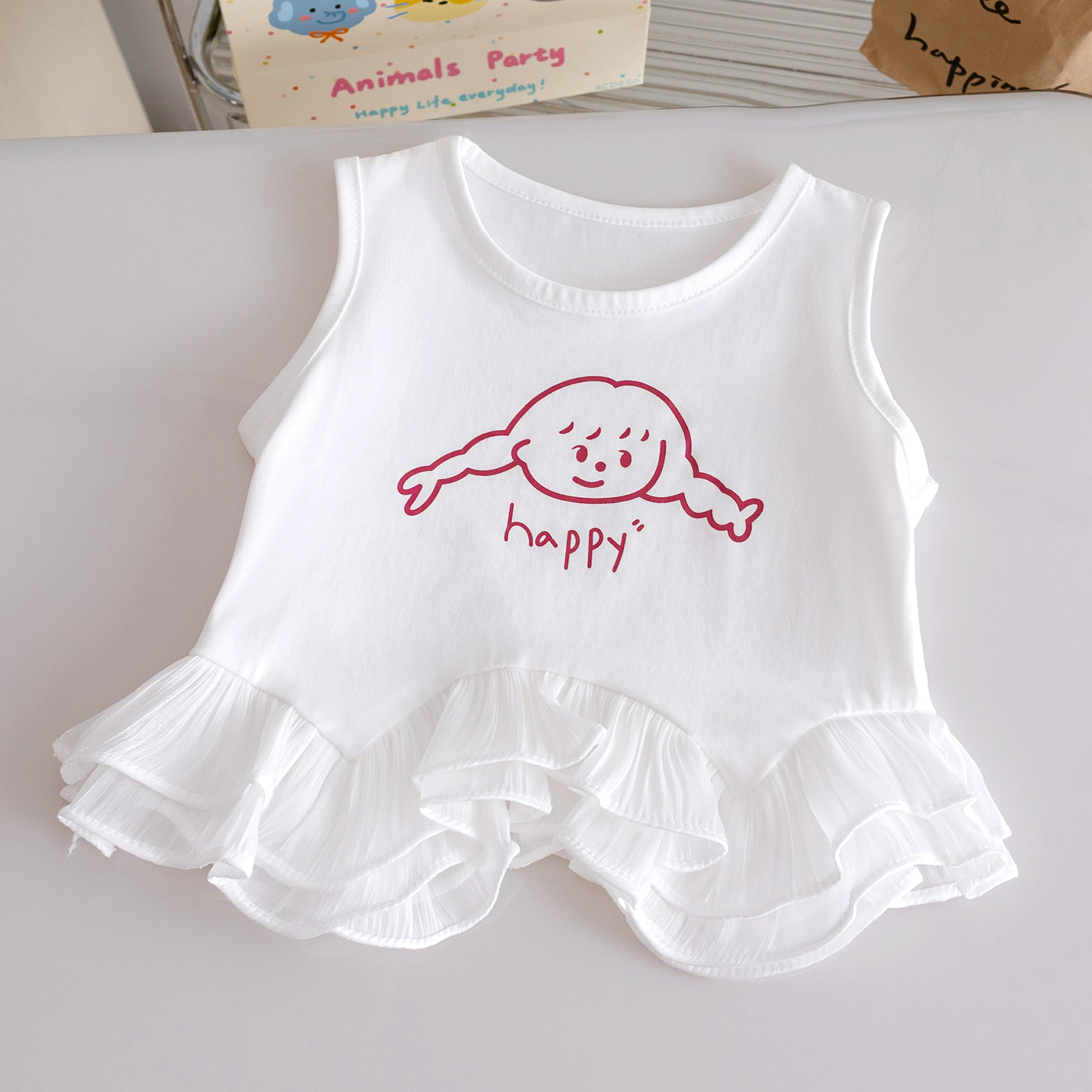 여자 달콤한 조끼 25 여름 새로운 어린 소녀 인쇄 민소매 티셔츠 아기 소녀 다목적 공주 스타일 탑 3