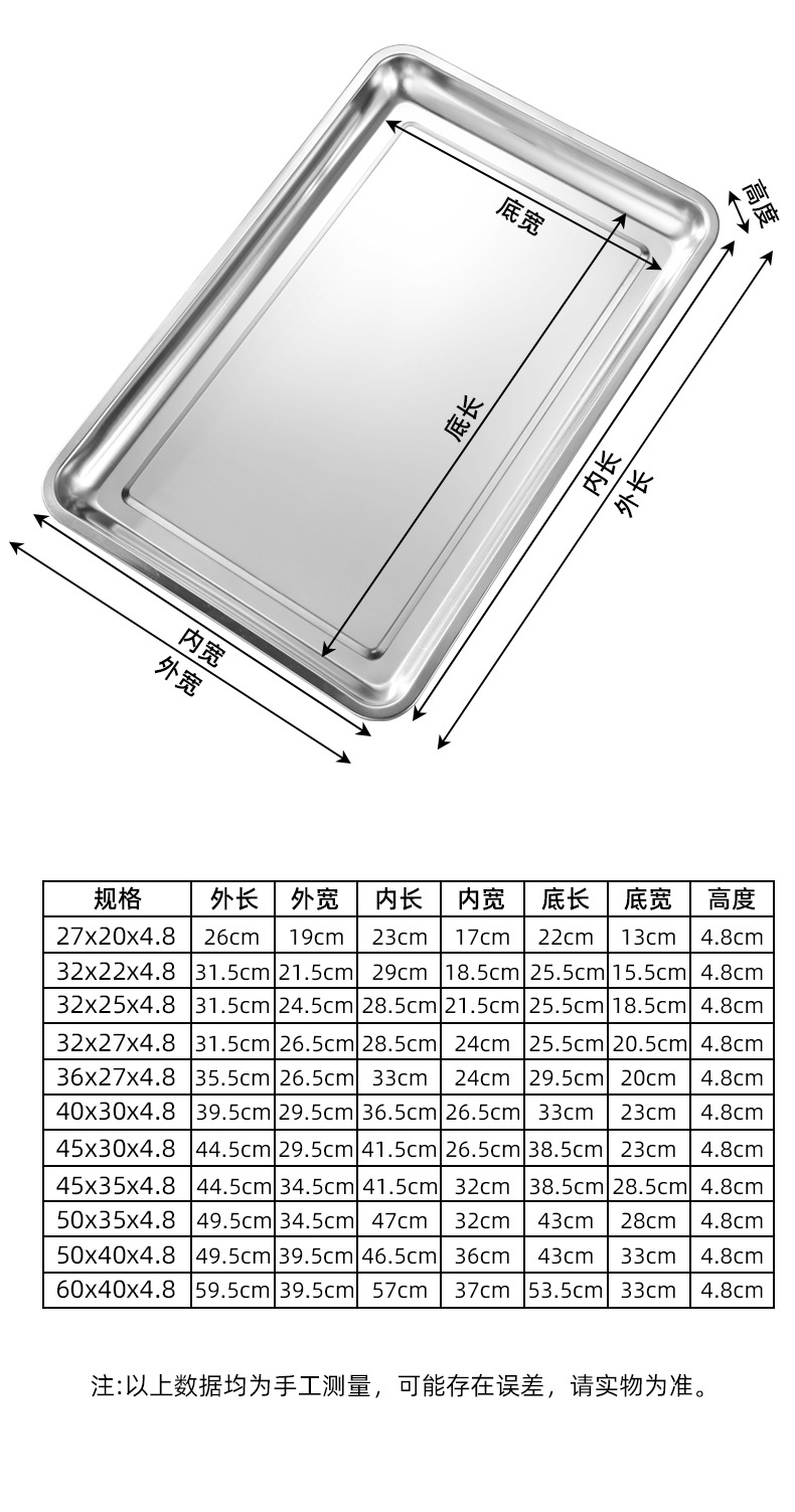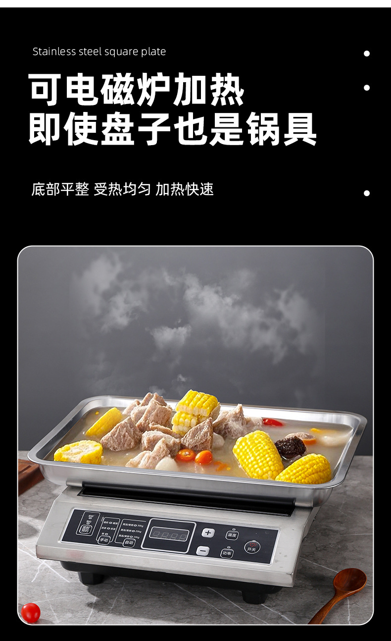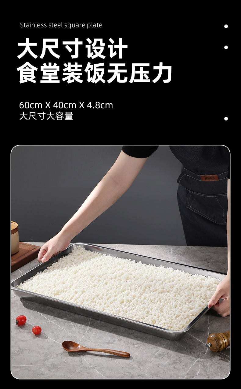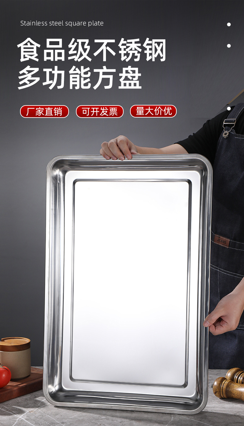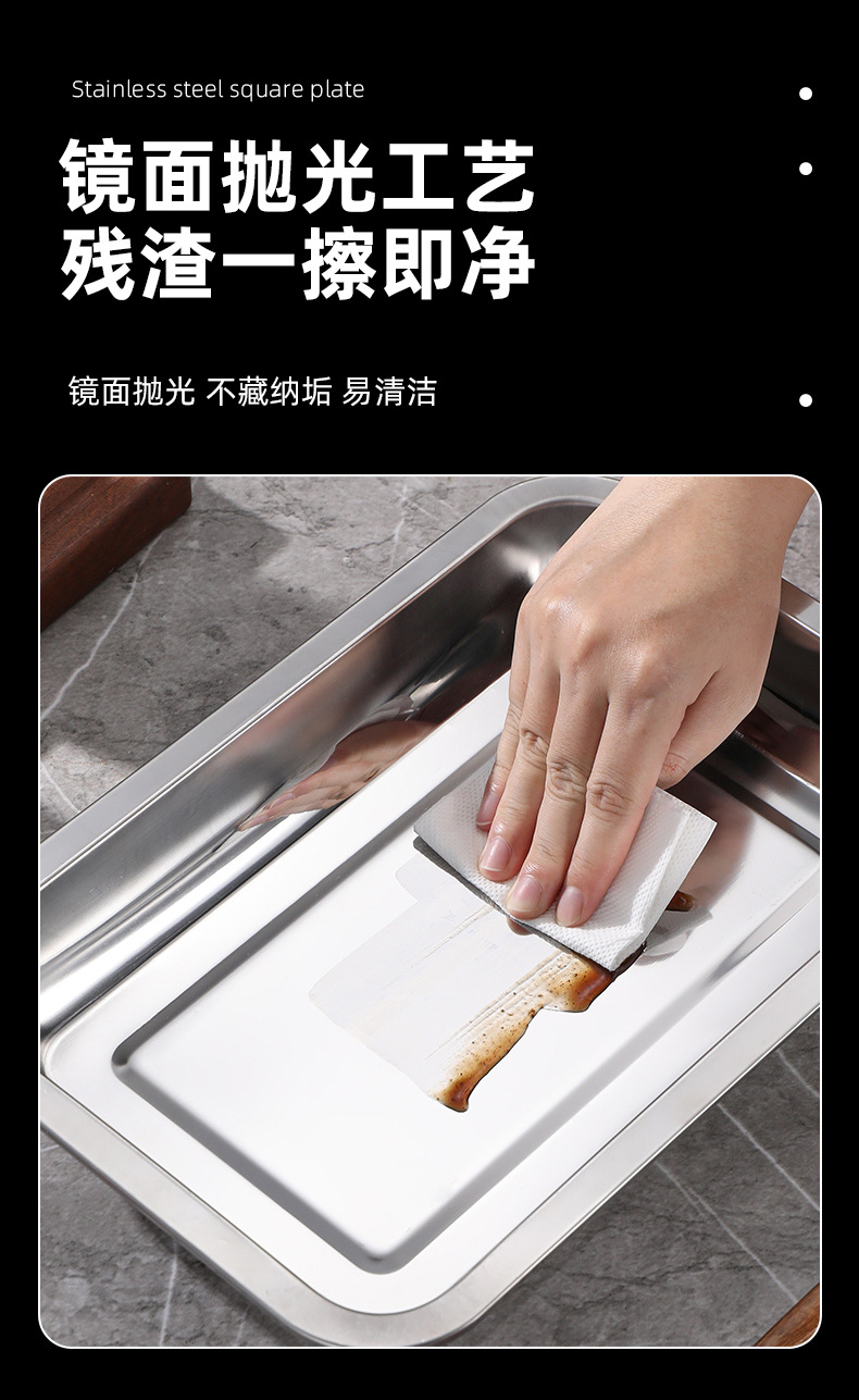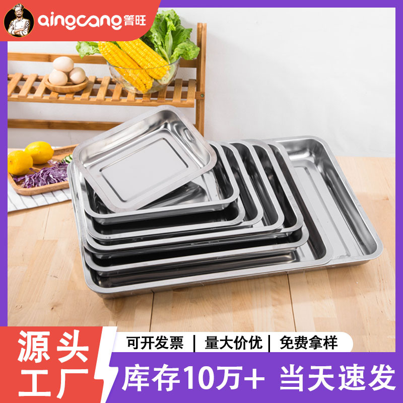 [무료 배송] 스테인레스 스틸 사각 접시, 밥 접시, 바베큐 접시, 상업용 가정용 만두 접시, 접시 트레이, 저녁 식사 접시