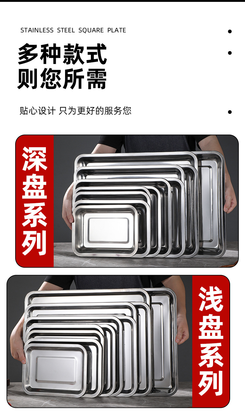 [무료 배송] 스테인레스 스틸 사각 접시, 밥 접시, 바베큐 접시, 상업용 가정용 만두 접시, 접시 트레이, 저녁 식사 접시스토어 가기
