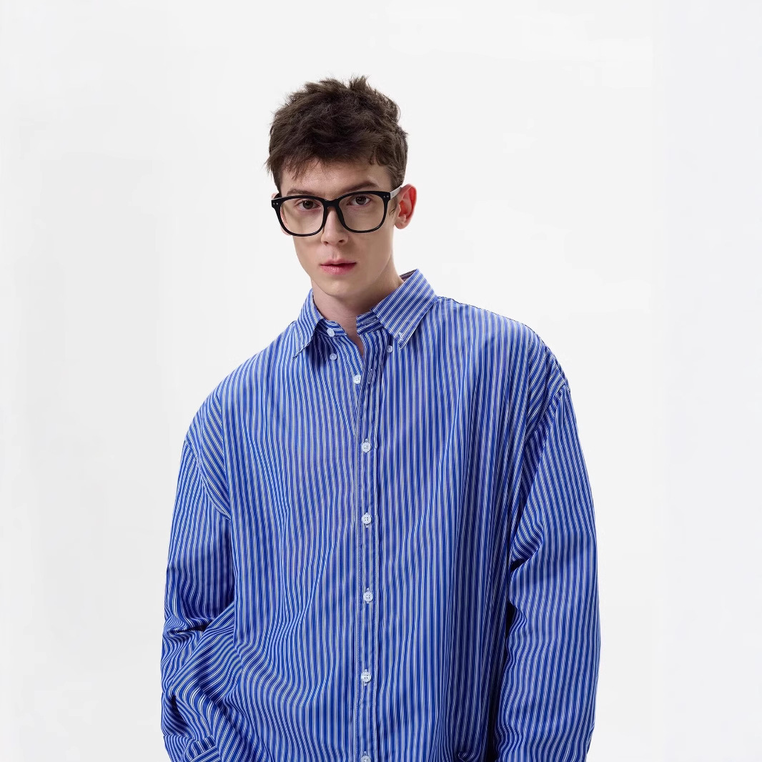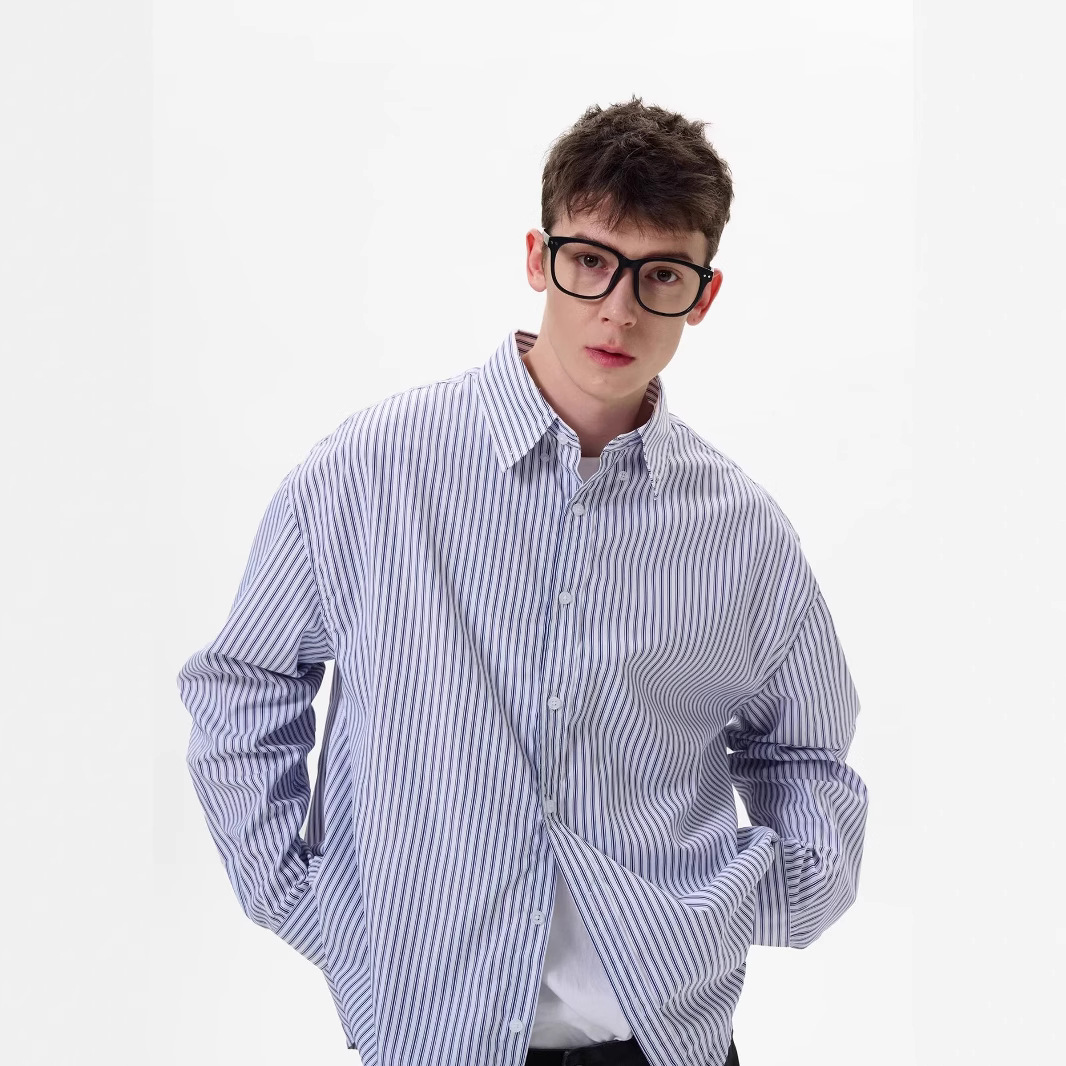 2025 스트라이프 긴팔 셔츠 남성 봄 착용 통근 캐주얼 루즈 얇은 코트 소년 옥스포드 셔츠스토어 가기