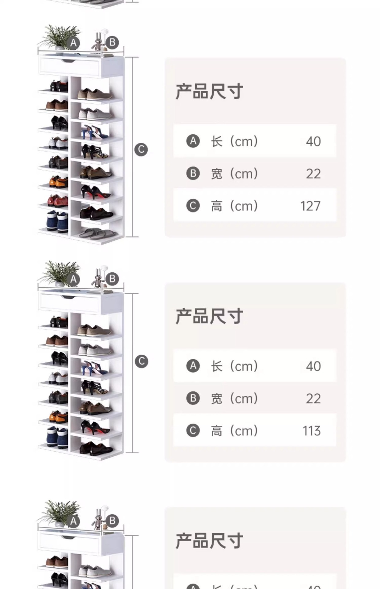 • [8단에 신발 14켤레 수납 가능] 앤티크 백단색 40*22*113