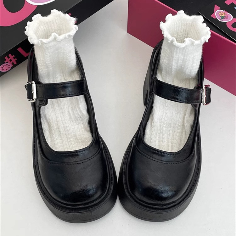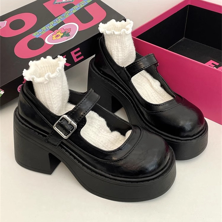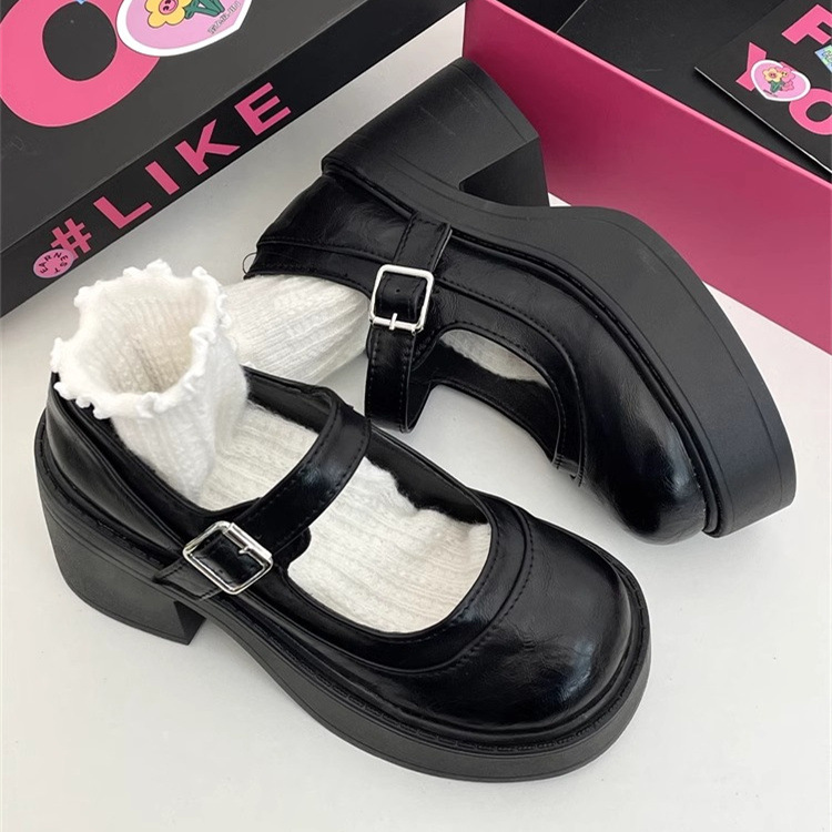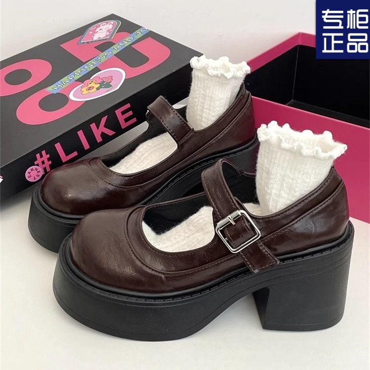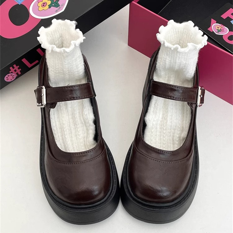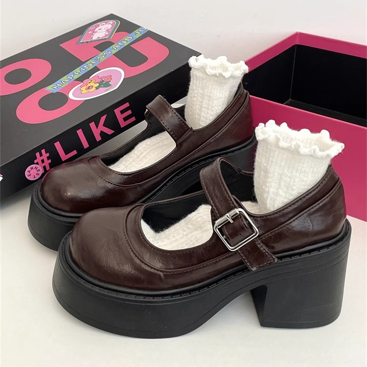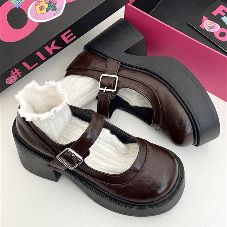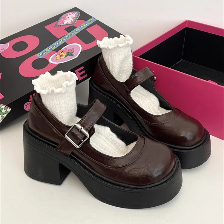 여성을위한 작은 갈색 두꺼운 밑창 메리 제인 하이힐 2025 새로운 두꺼운 굽 여성 신발 대학 스타일 싱글 신발 작은 가죽 신발스토어 가기