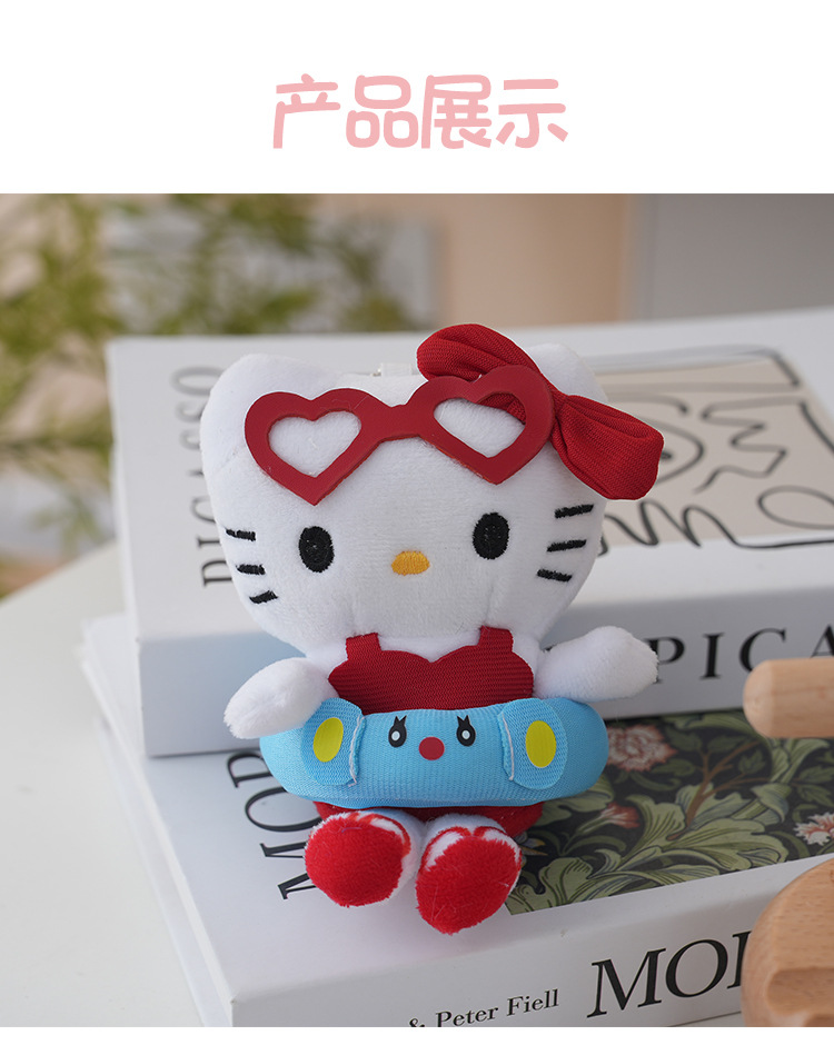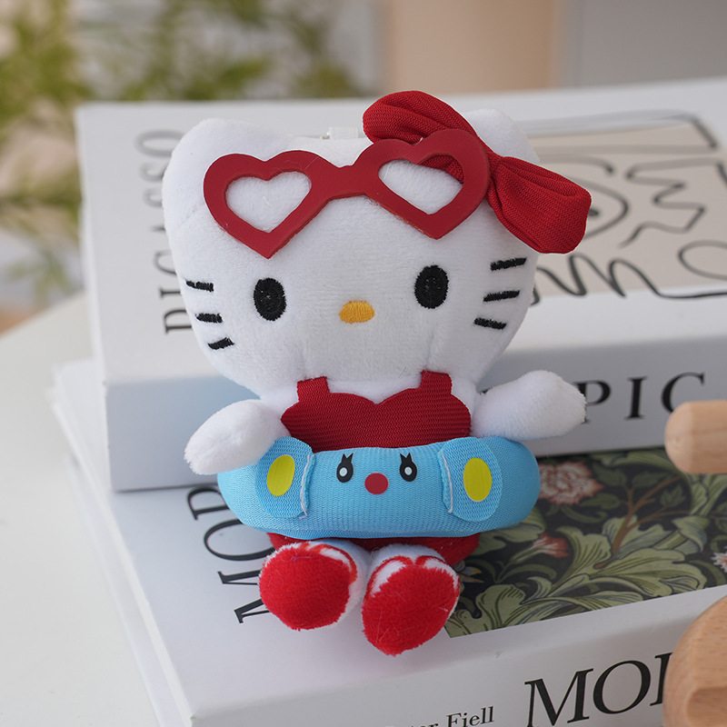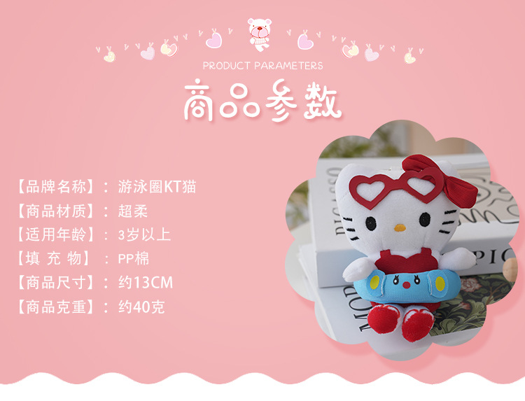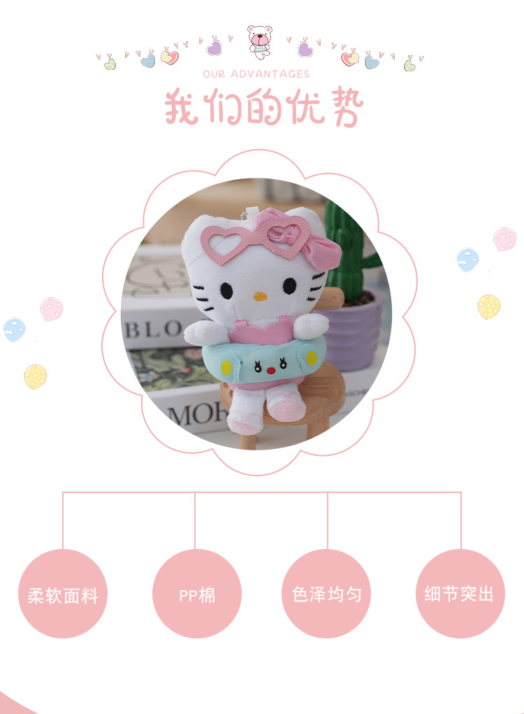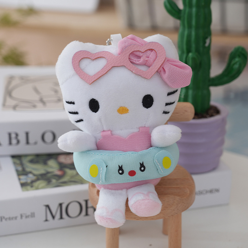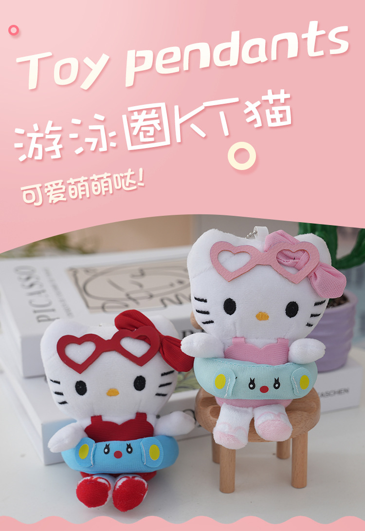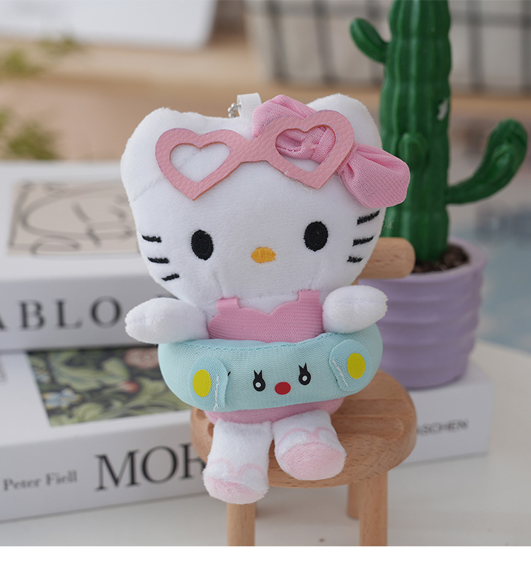 새로운 수영 반지 KT 고양이 플러시 장난감 헬로 키티 인형 열쇠 고리 가방 펜던트 인형 선물 플러시 펜던트스토어 가기