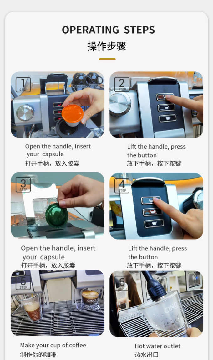 CINO Maia 완전 자동 상업용 캡슐 커피 머신 20Bar 고압 추출 지능형 항온 및 세척 용이