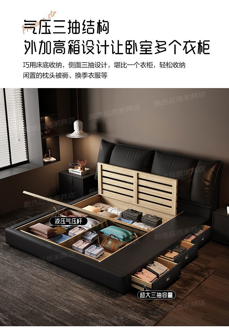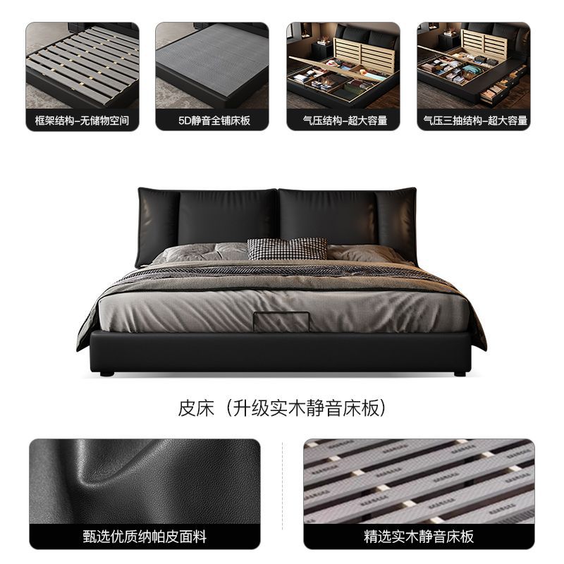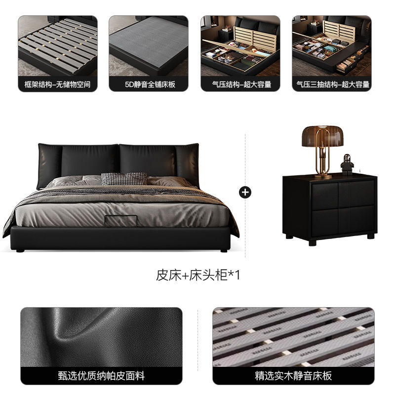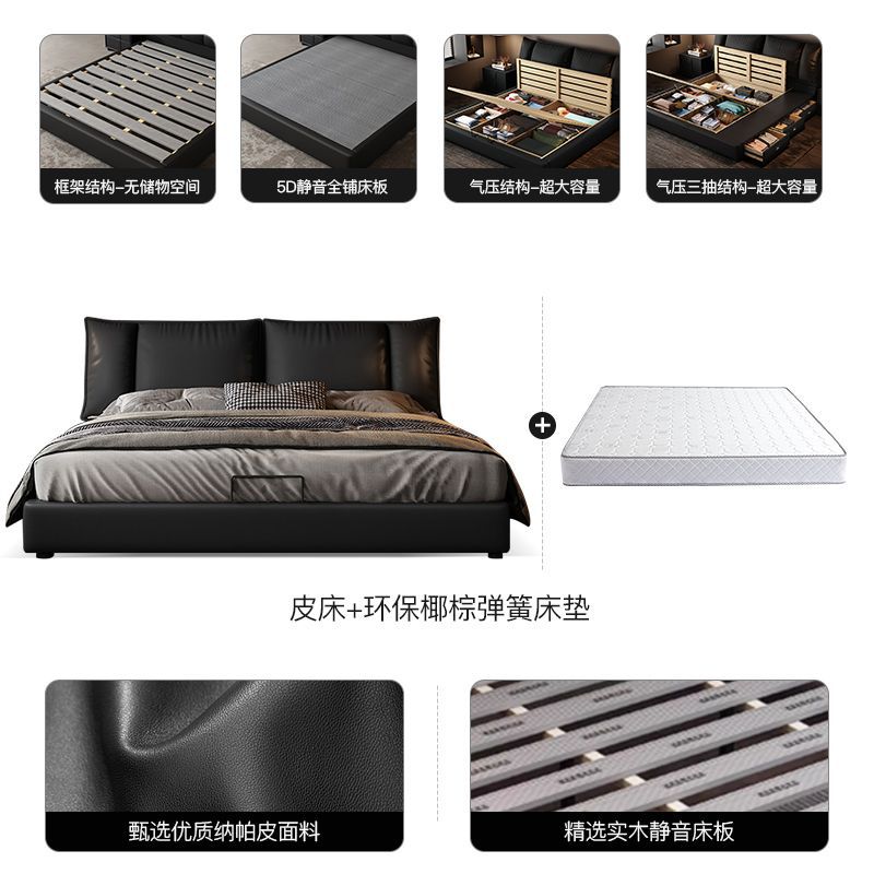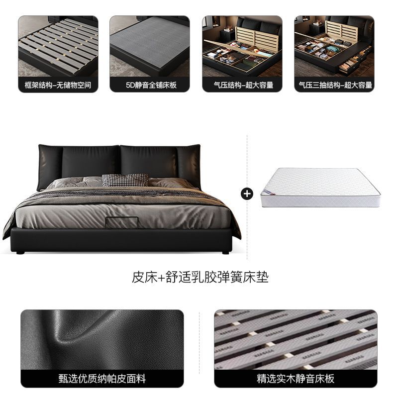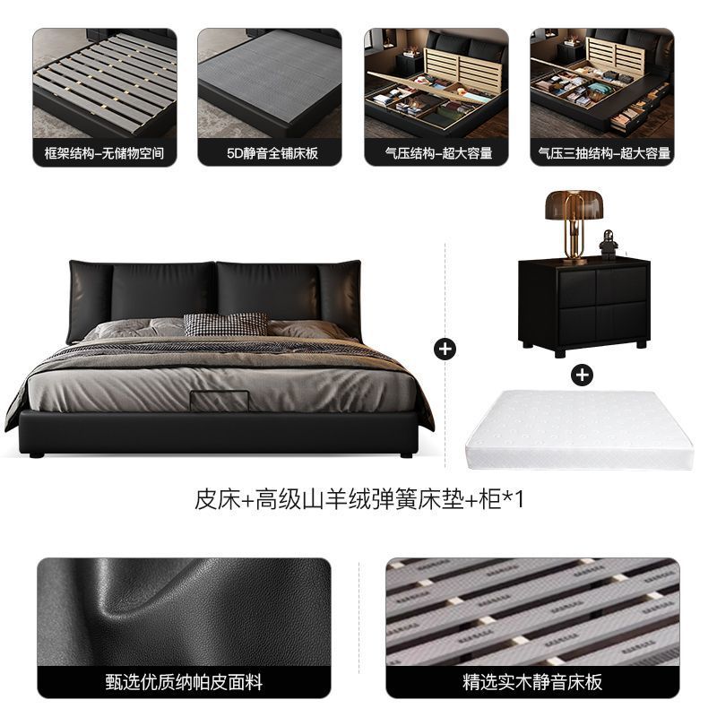 • 나파 가죽 침대+캐시미어 라텍스 스프링 매트리스+캐비닛*1