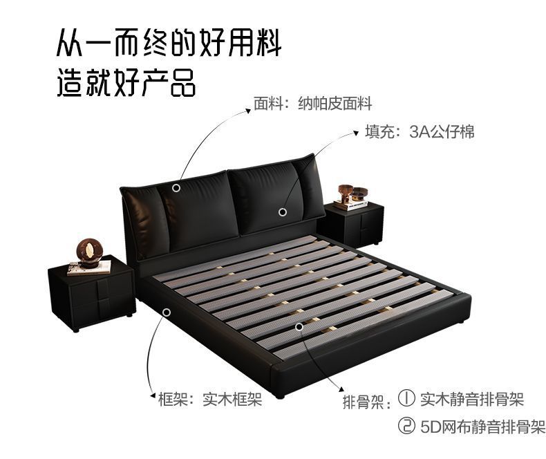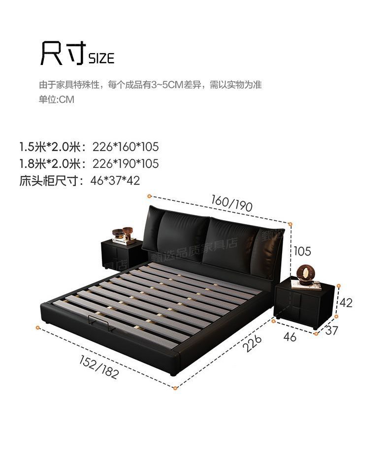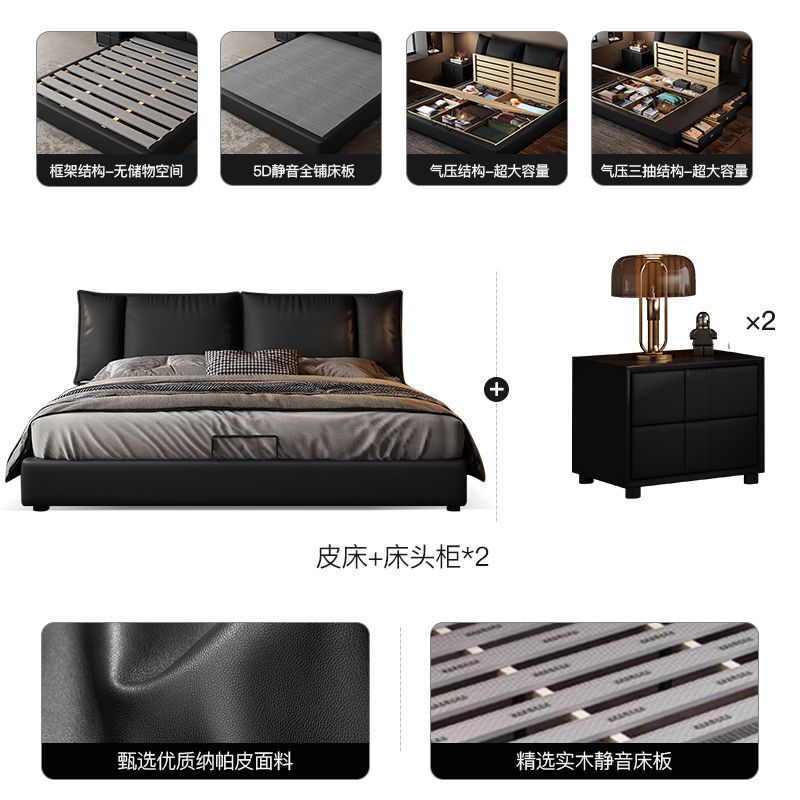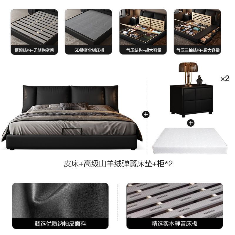• 나파 가죽 침대 + 캐시미어 라텍스 스프링 매트리스 + 캐비닛*2