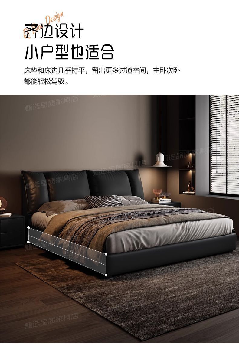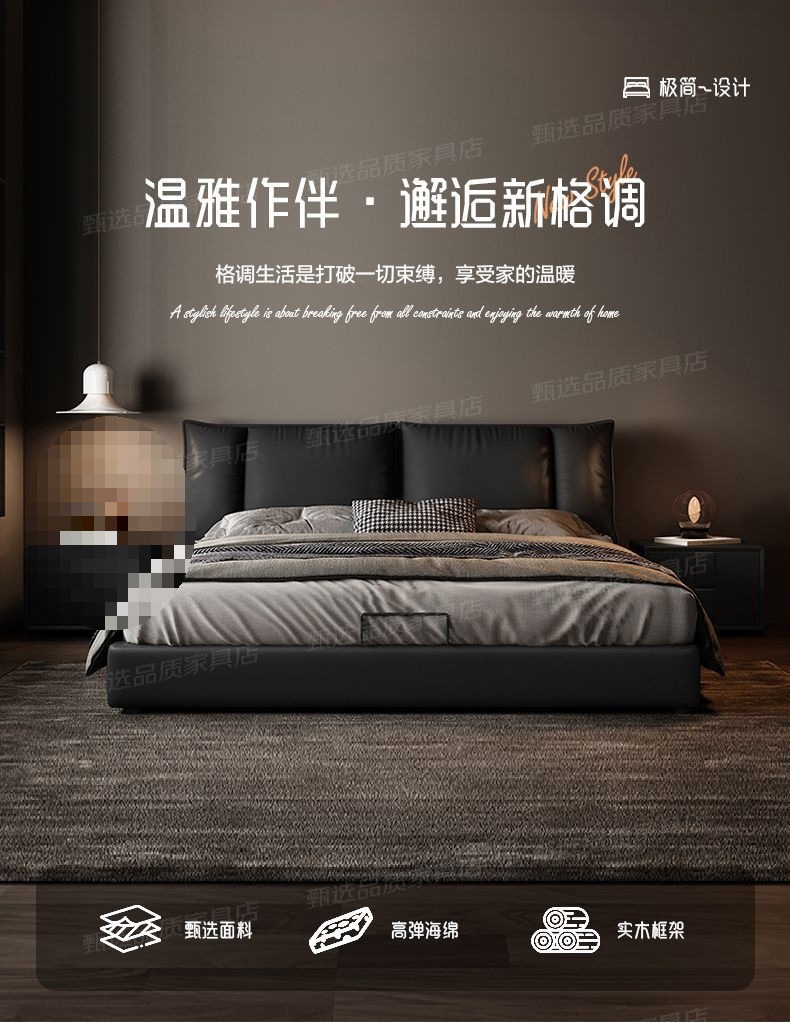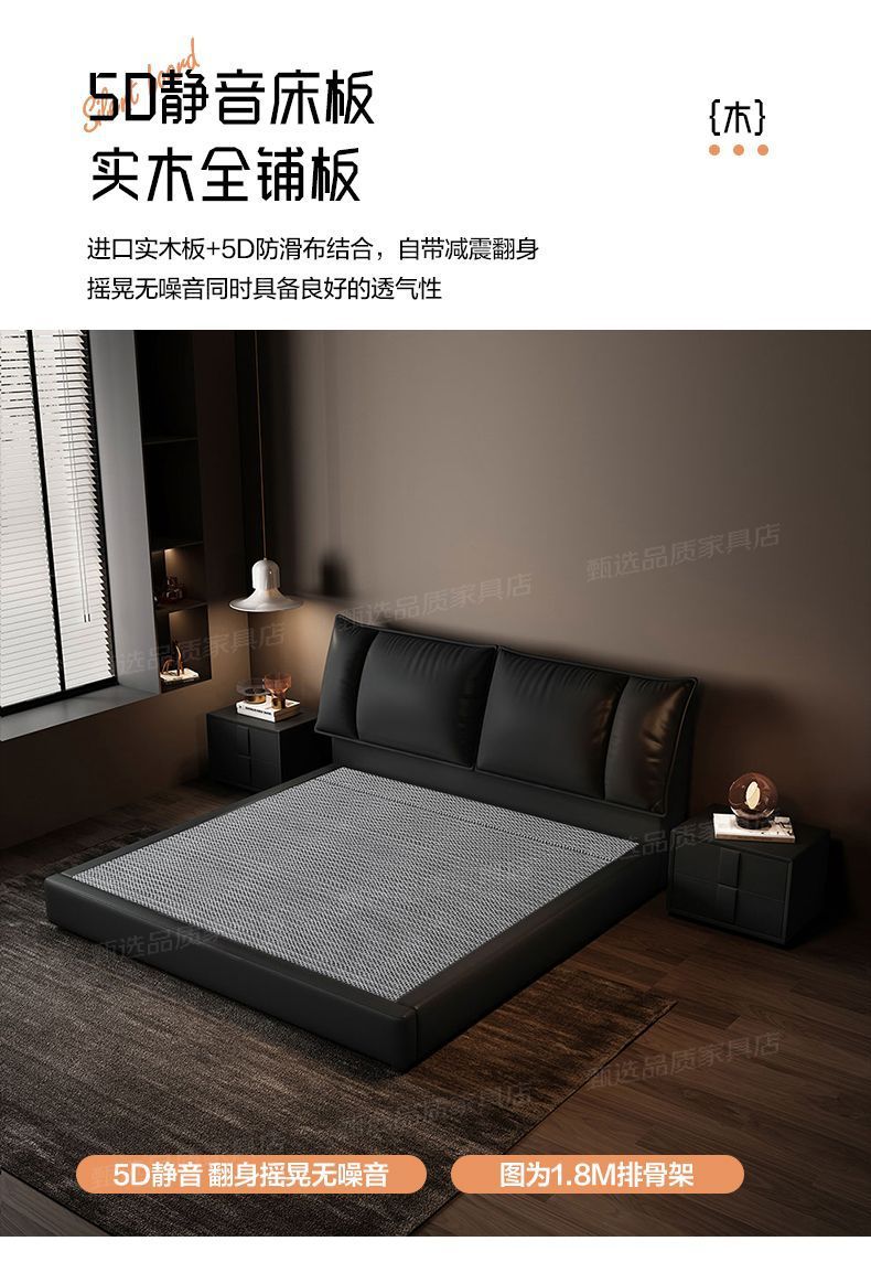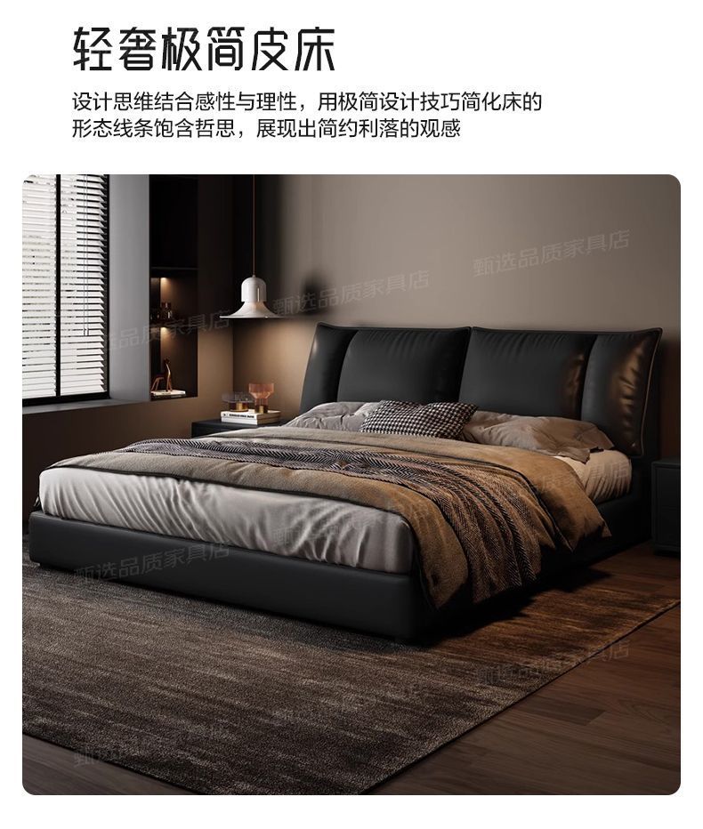 이탈리아 미니멀리스트 침대 현대적인 미니멀리스트 작은 아파트 마스터 침실 더블 침대 1.5m 새로운 라이트 럭셔리 가죽 침대스토어 가기