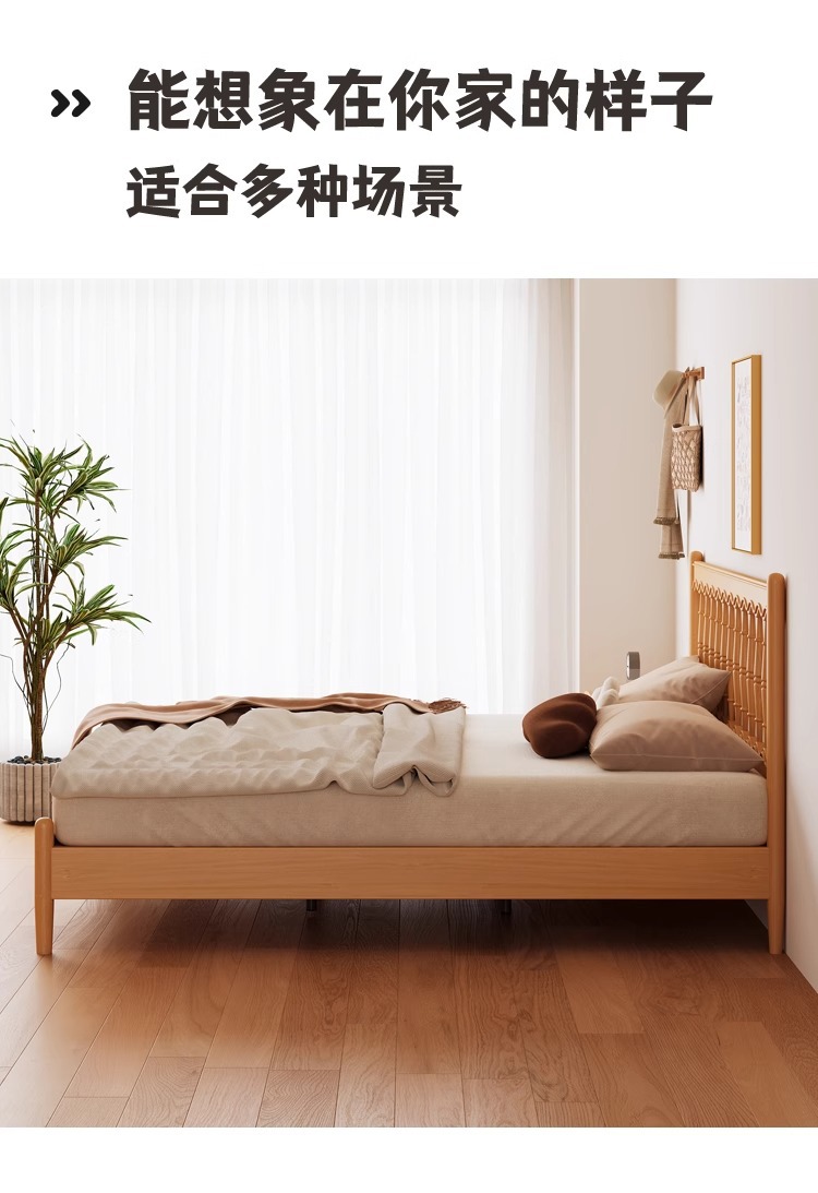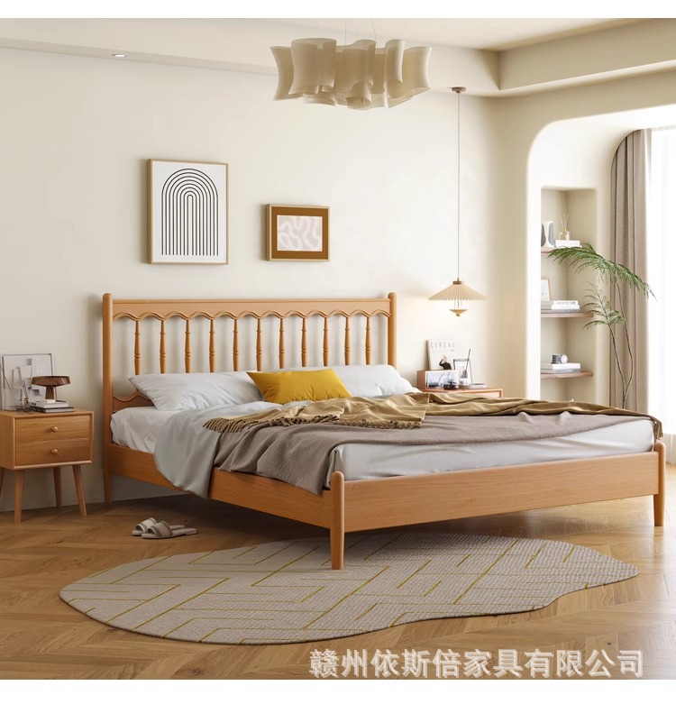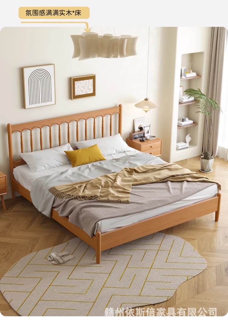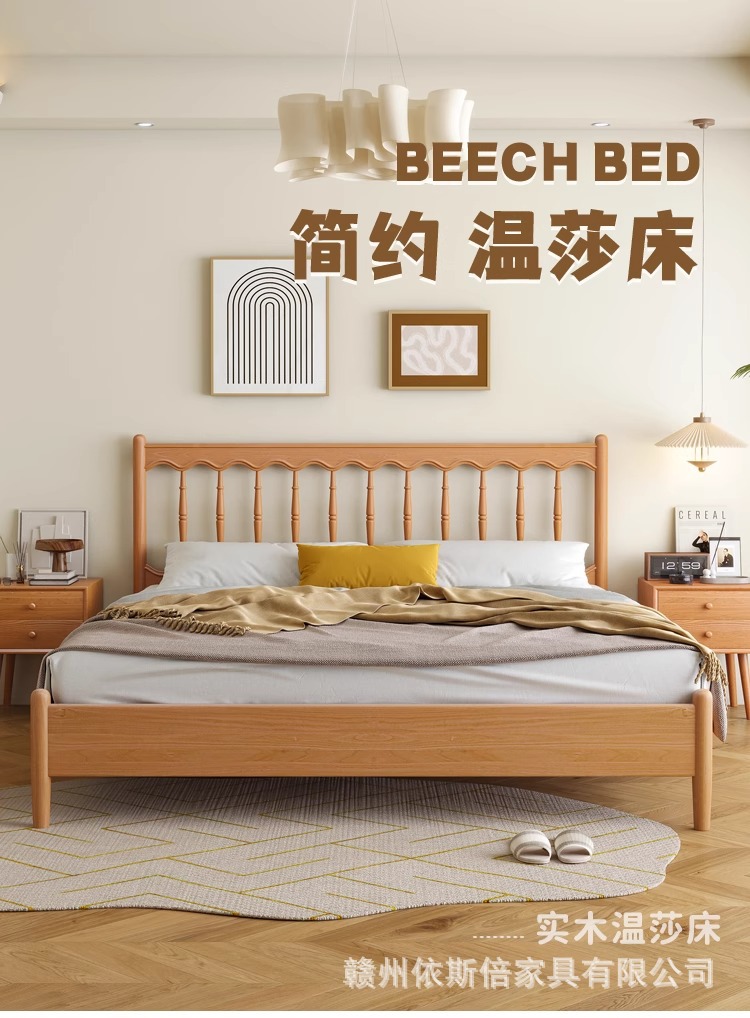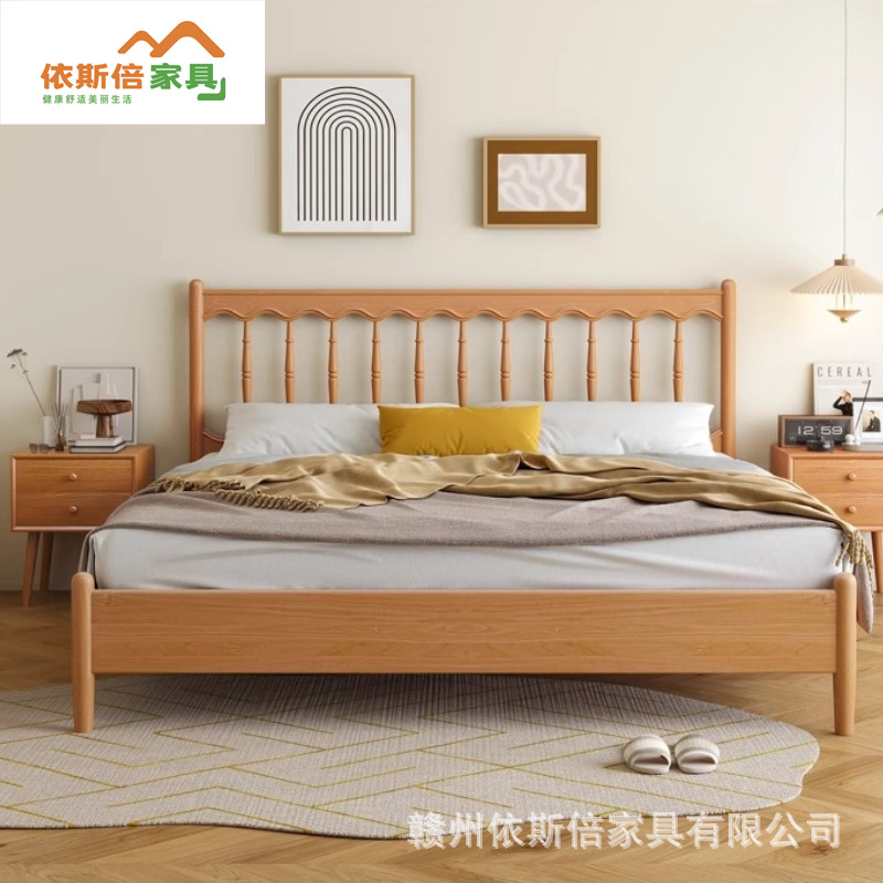 순수 원목 침대 1.8m 로그 일본식 너도밤나무 더블 침대 1.5 모던 심플 북유럽 소형 싱글 침대스토어 가기