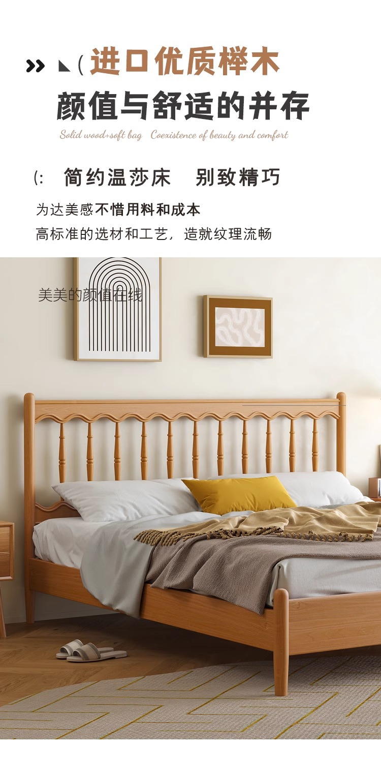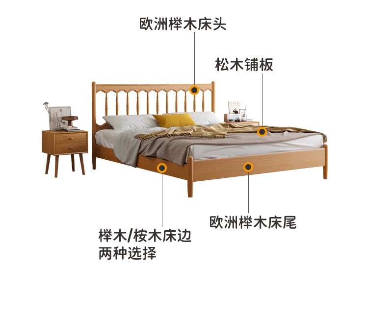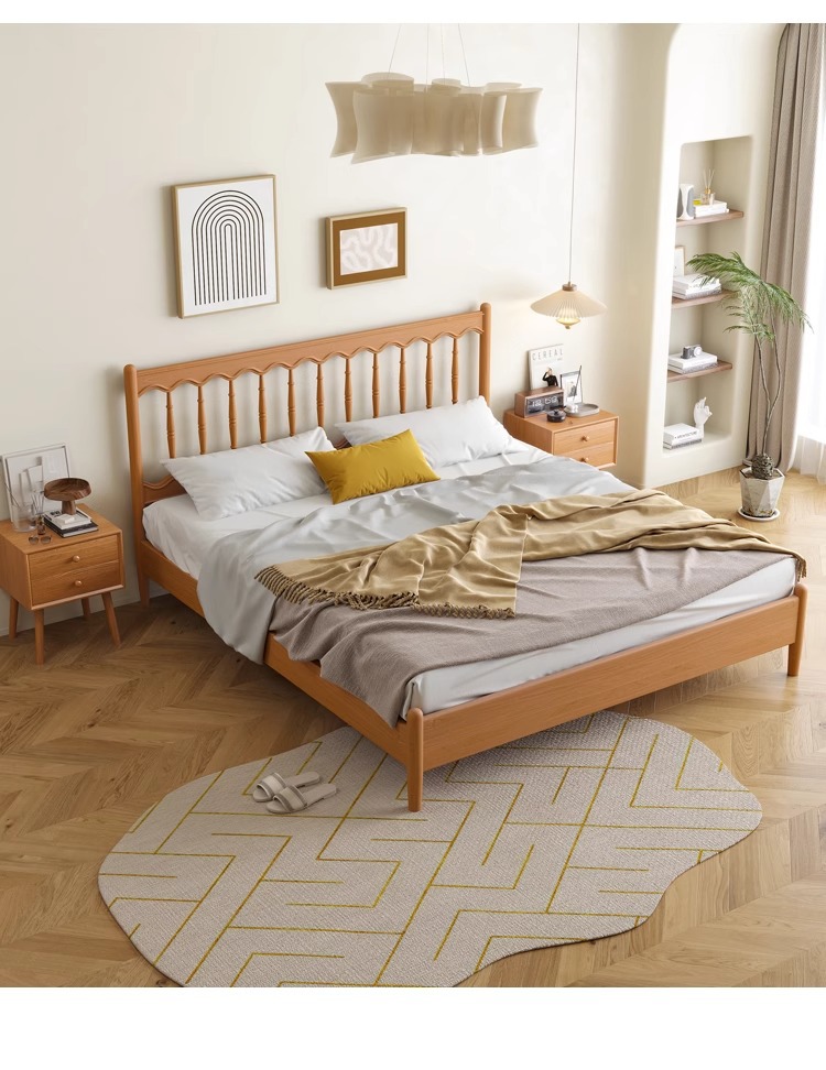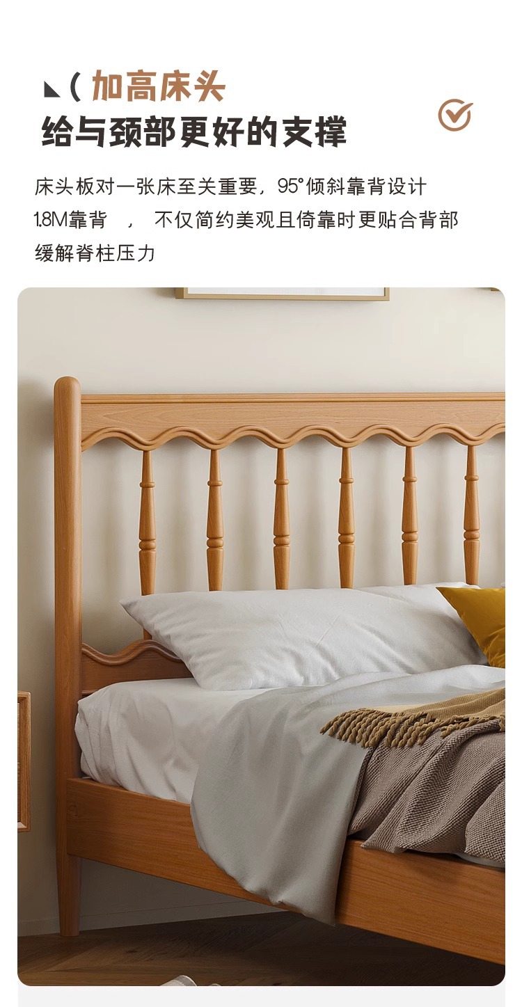 순수 원목 침대 1.8m 로그 일본식 너도밤나무 더블 침대 1.5 모던 심플 북유럽 소형 싱글 침대스토어 가기