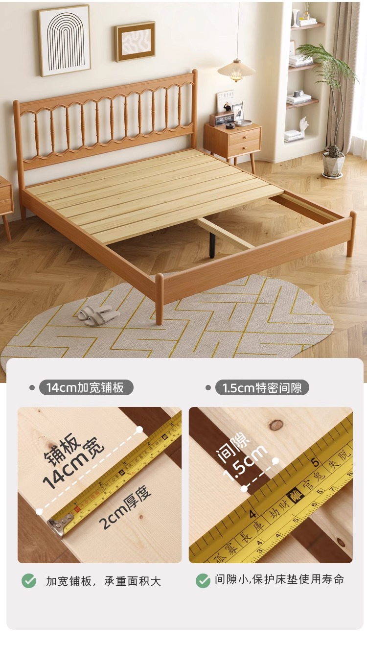 순수 원목 침대 1.8m 로그 일본식 너도밤나무 더블 침대 1.5 모던 심플 북유럽 소형 싱글 침대