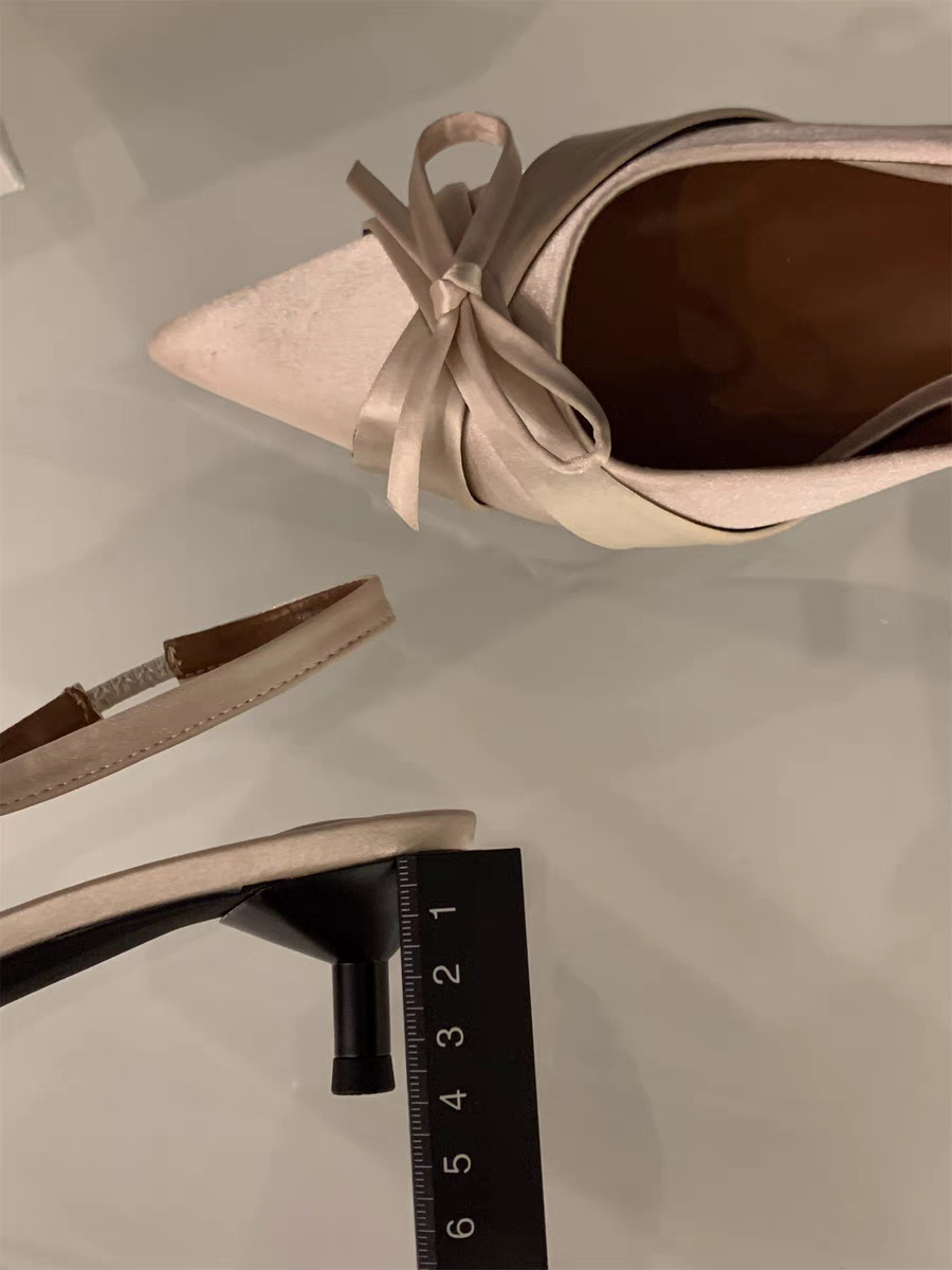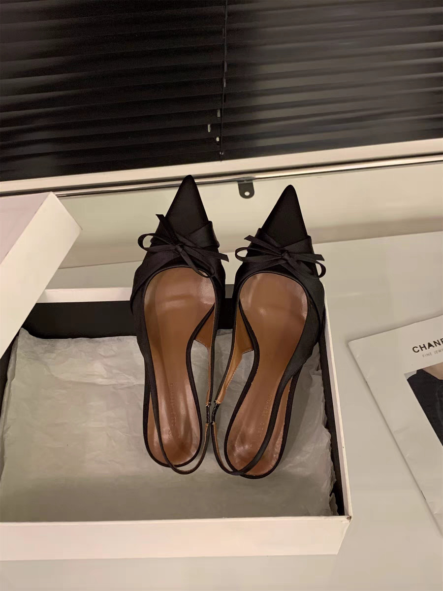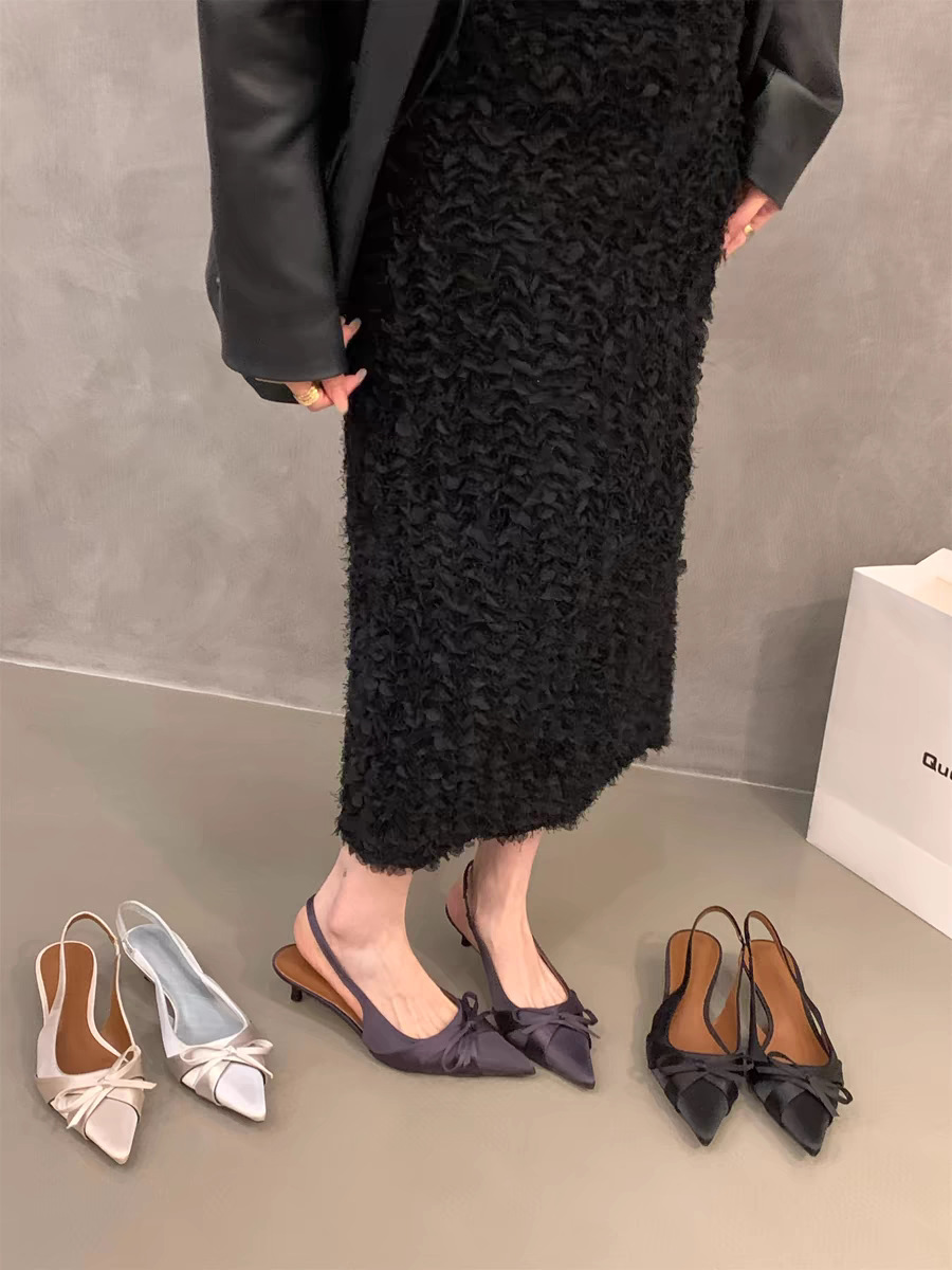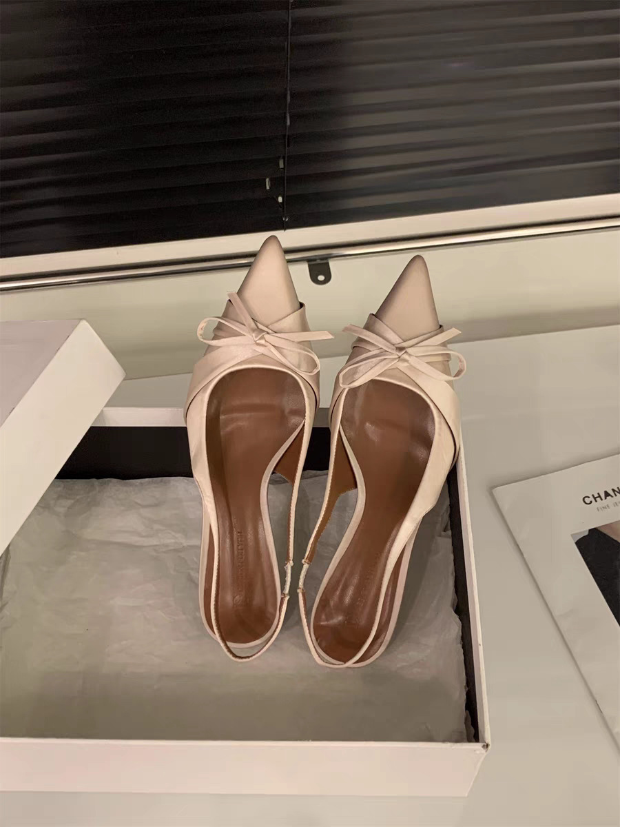 프렌치 스틸레토 하이힐, 토캡 샌들, 2025년 여름 신상 스타일, 여성스러운 리본매듭, 포인티드 토 로우힐 슈즈