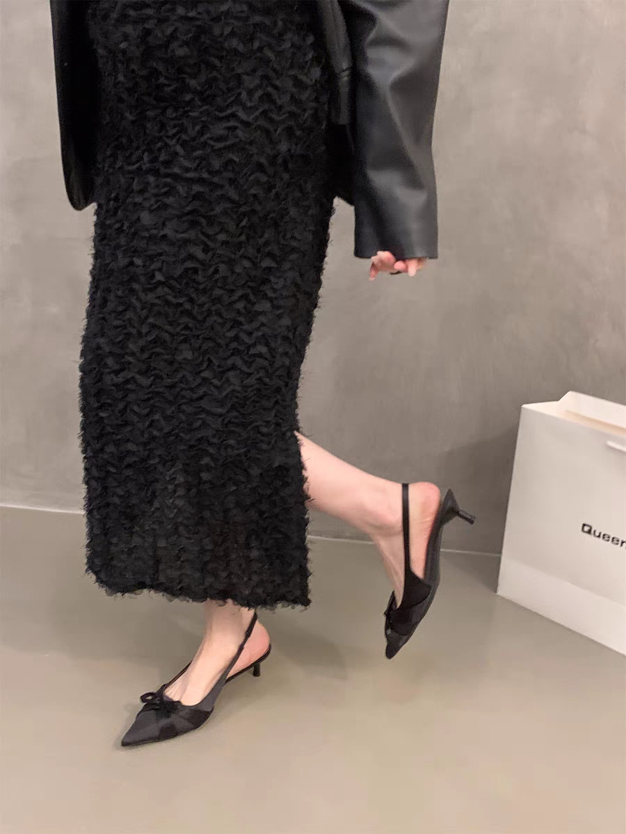 프렌치 스틸레토 하이힐, 토캡 샌들, 2025년 여름 신상 스타일, 여성스러운 리본매듭, 포인티드 토 로우힐 슈즈스토어 가기