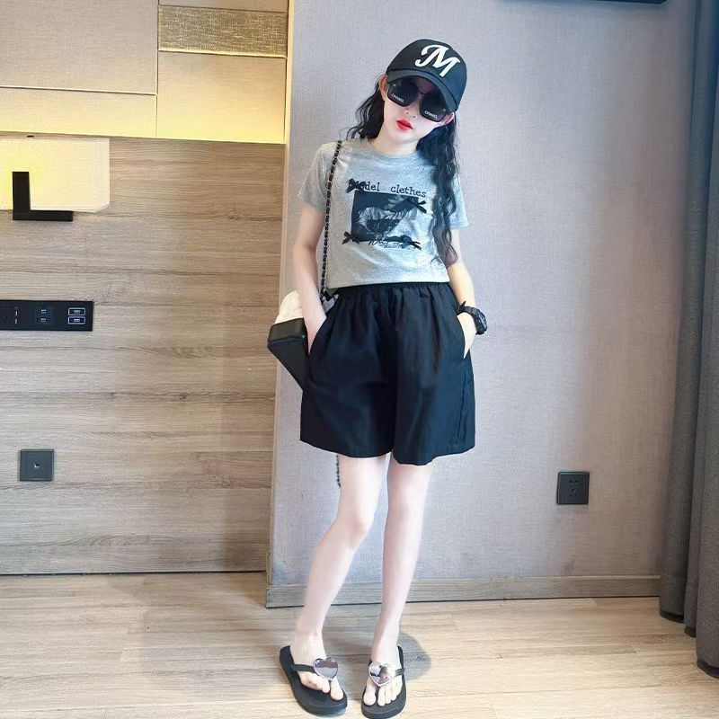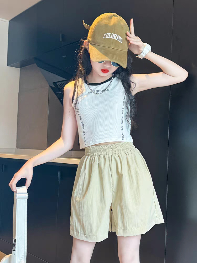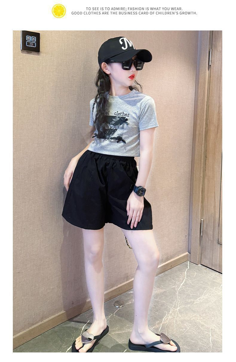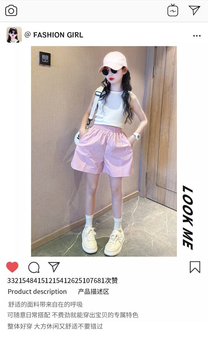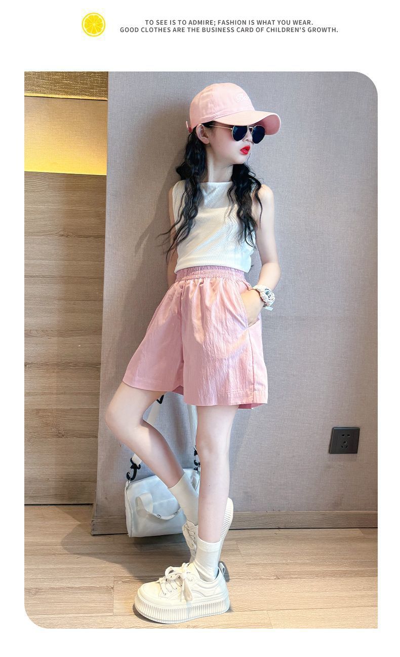 2025년 여름 여아 반바지 아우터 신상 아동 5부 팬츠, 패셔너블한 여아 및 큰 아동용 속건 스포츠 팬츠, 얇은 스타일스토어 가기