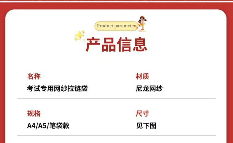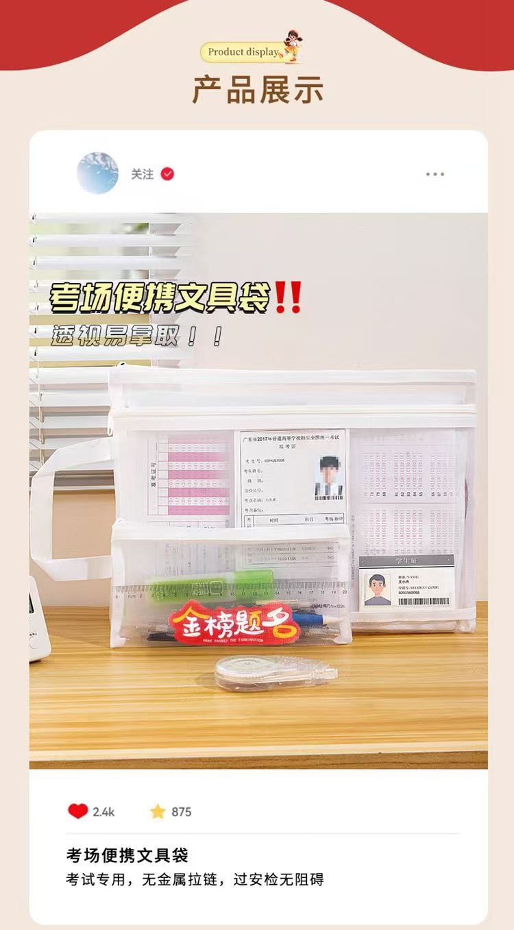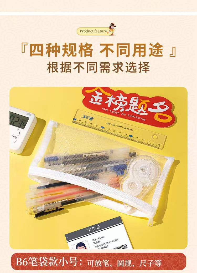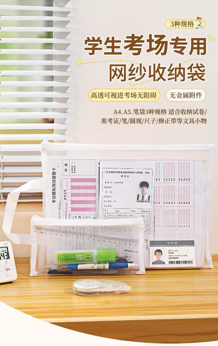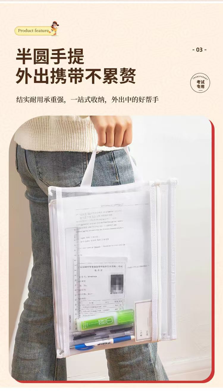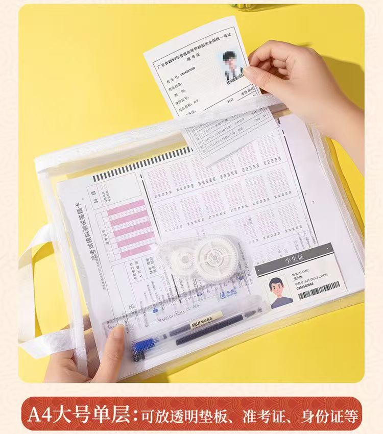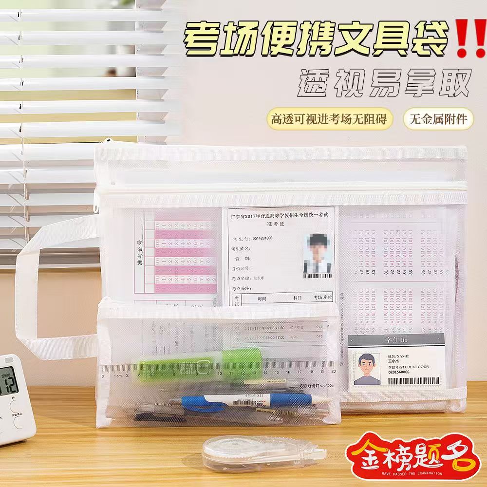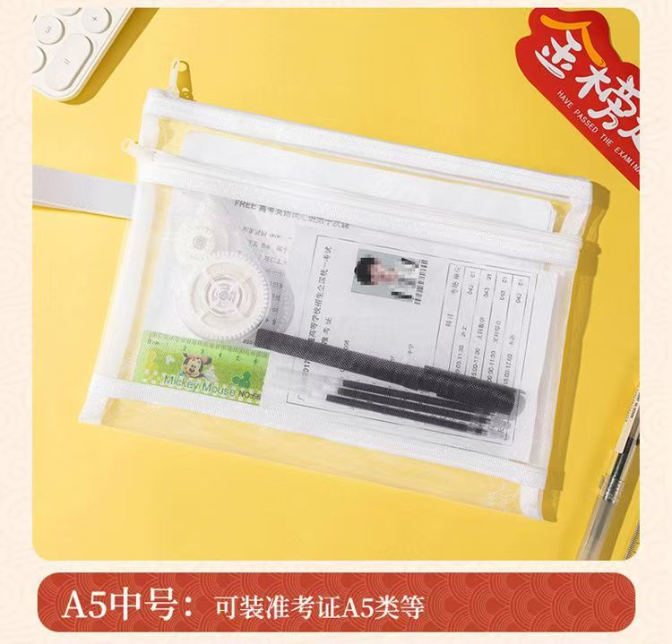 A4 시험 특수 문서 가방 투명 메쉬 플라스틱 고등학교 입학 시험 및 대학 입학 시험 연필 가방 지퍼 허가서 보관 가방스토어 가기