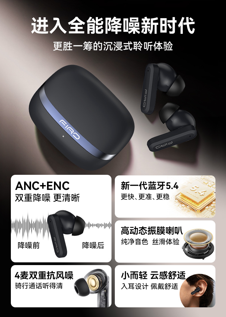 2025년 새로운 블루투스 헤드셋, 긴 배터리 수명, 장시간 착용, 통증 없음, 4개의 마이크 소음 감소, 이어폰형 블루투스 무선 헤드셋 firo