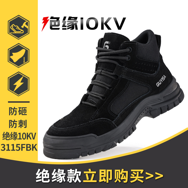 남성용 하이탑 안전화, 충격 방지, 관통 방지, 절연 10KV, 겨울용 보온, 내마모성 작업 전기공 신발스토어 가기