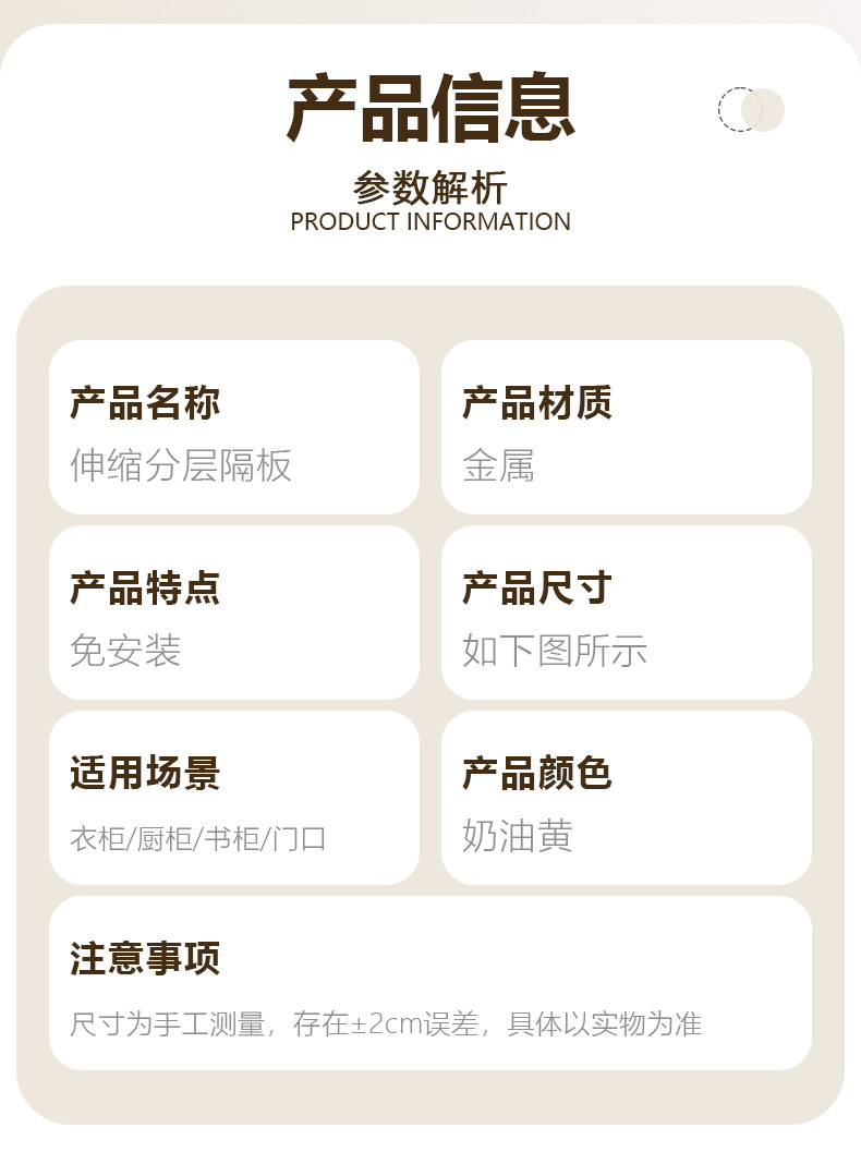 • [수납식 * 2개 팩] 길이 50-85 폭 35 크림색 하이 스타일