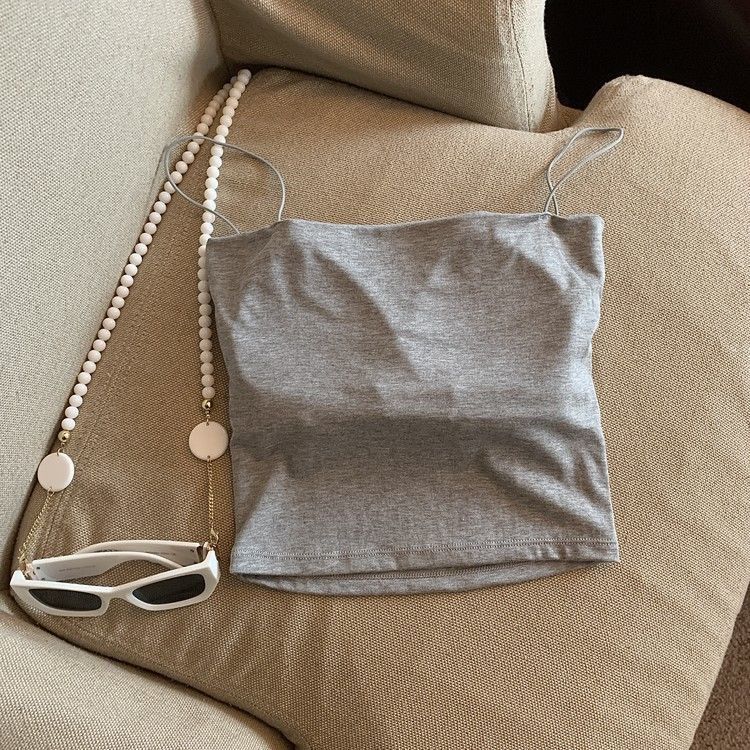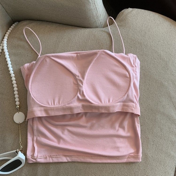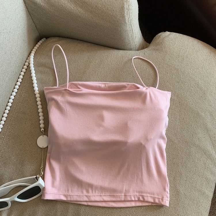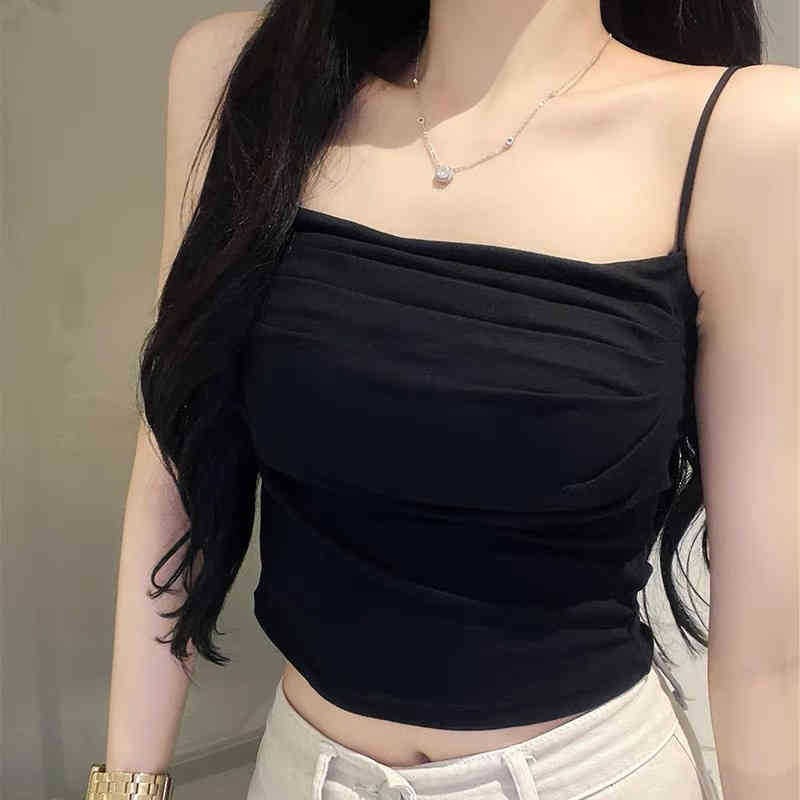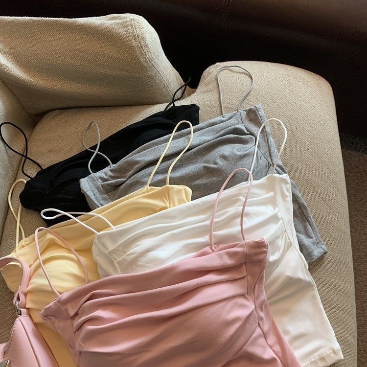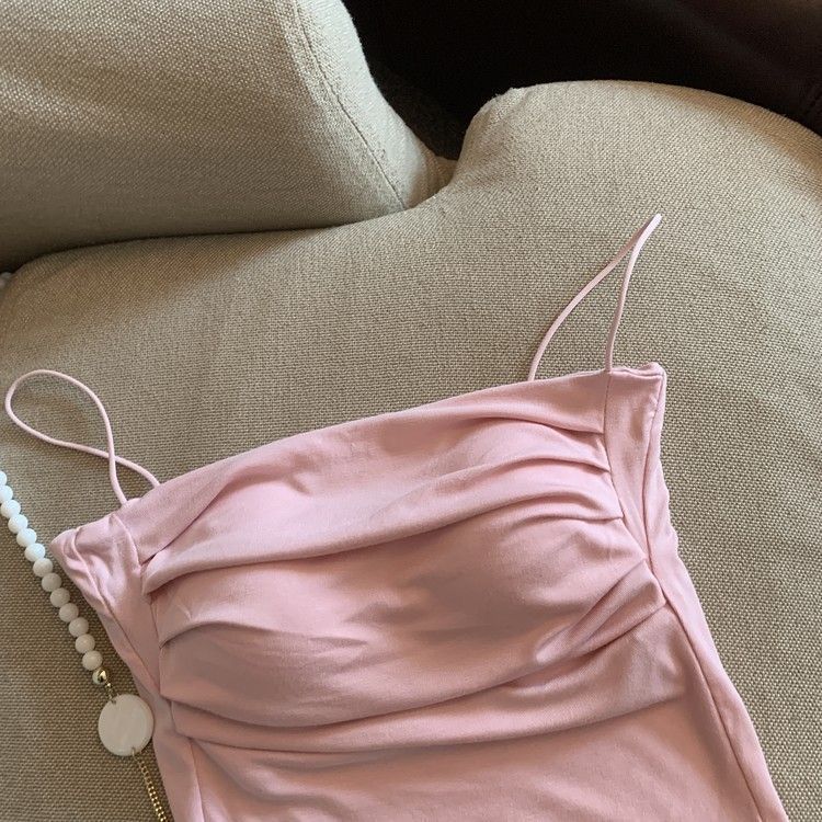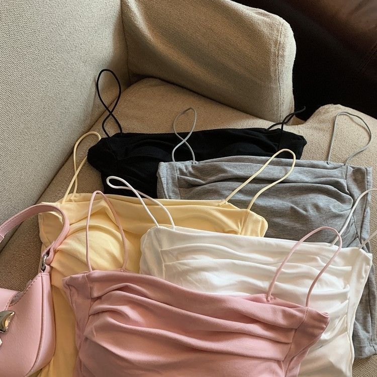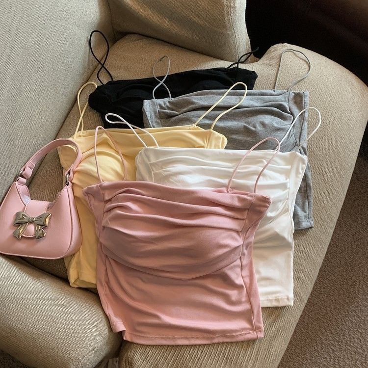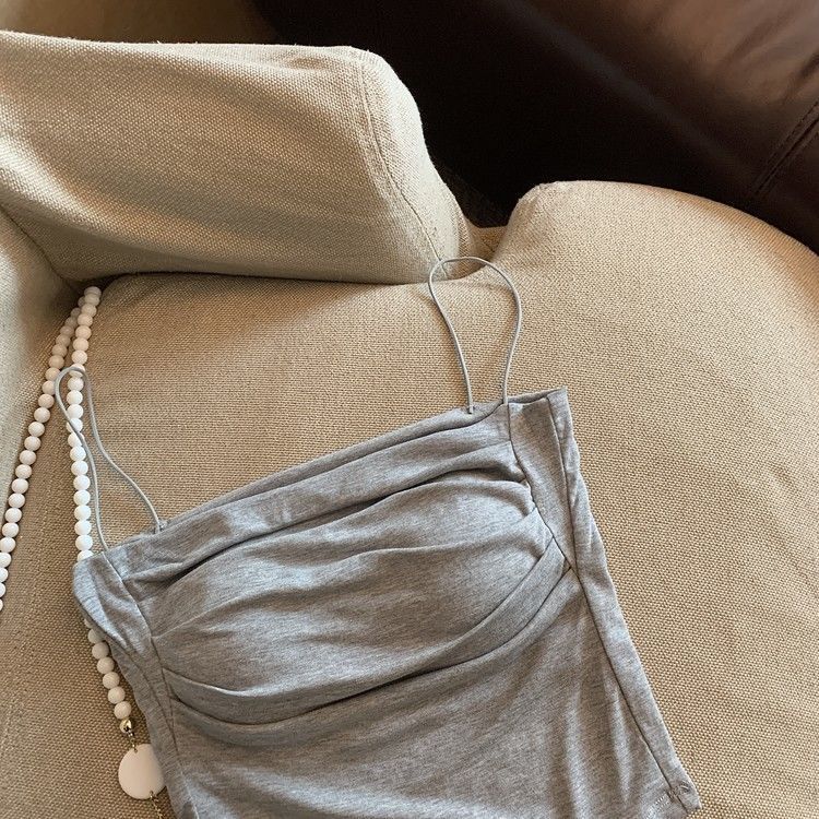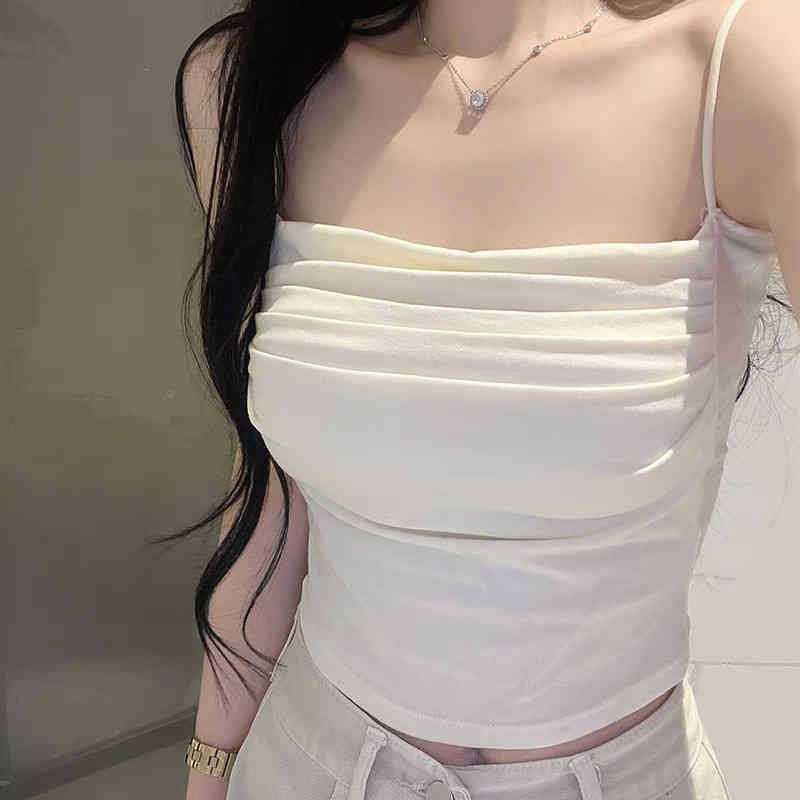 달콤하고 매콤한 스타일의 주름 장식이 아름다운 백 스트랩 스파게티 스트랩 조끼 아우터웨어 슬림핏 가슴 감싸는 고정컵 올인원 튜브탑 여성용스토어 가기