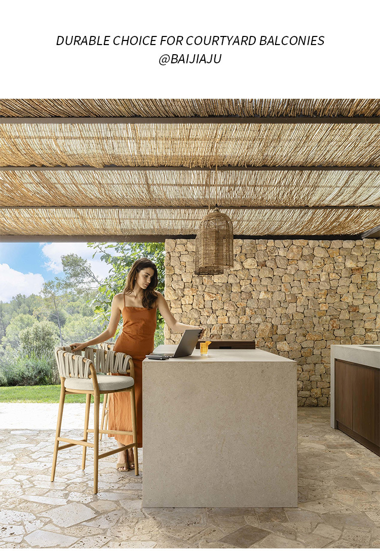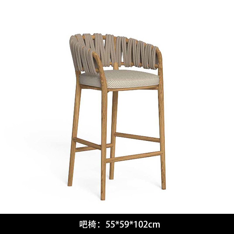야외 로프로 짠 원목 식탁과 의자, 비와 햇빛 차단, 빌라 호텔 야외 등나무로 짠 티크 목재 안뜰 레스토랑 바 의자